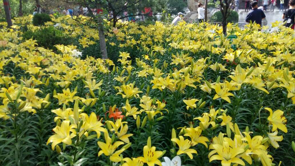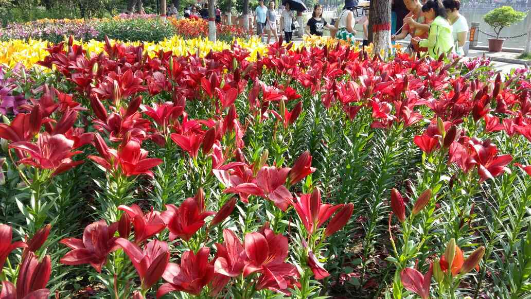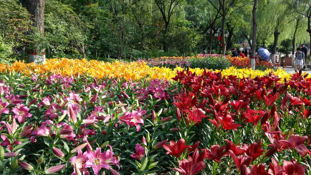 昨天晚上和老公在夜色下赏🌻🌼百合花花,意犹未尽。今天下午老公专门陪我再游文赢公园欣赏百合花,阳光下的各色百合花,芬芳四溢,娇艳欲滴,据说满园的百合花经过3年的培养才有今天的美景。这真是:满园百合关不住,花香四溢飘园外!令我流连忘返!姐妹们欣赏花🌻吧!我今天特意穿了件老公给买的深蓝色百褶连衣裙,因为我要做花花的绿叶衬托!