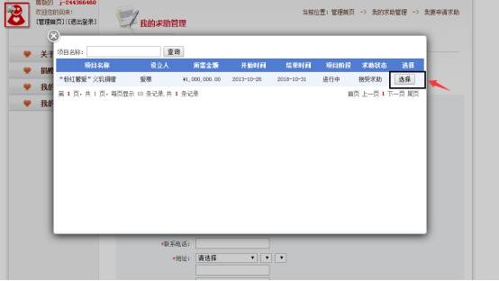 4、在女性健康模块选择义乳捐赠,点击“我要求助”进去申请列表: