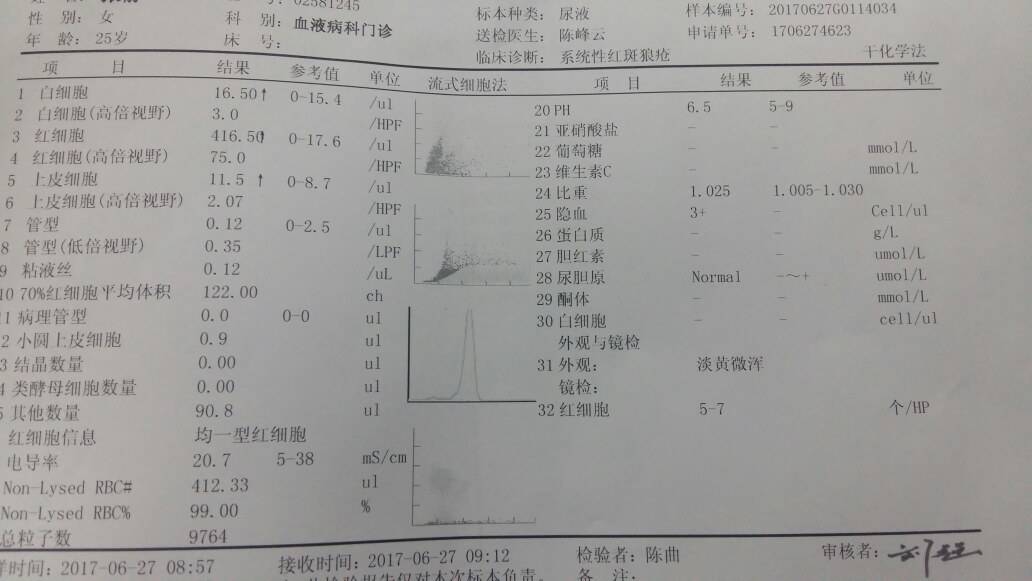 我也是今天检查的 也是尿血 太吓人了 大夫也没检查出来哪出的血 狼疮指标正常