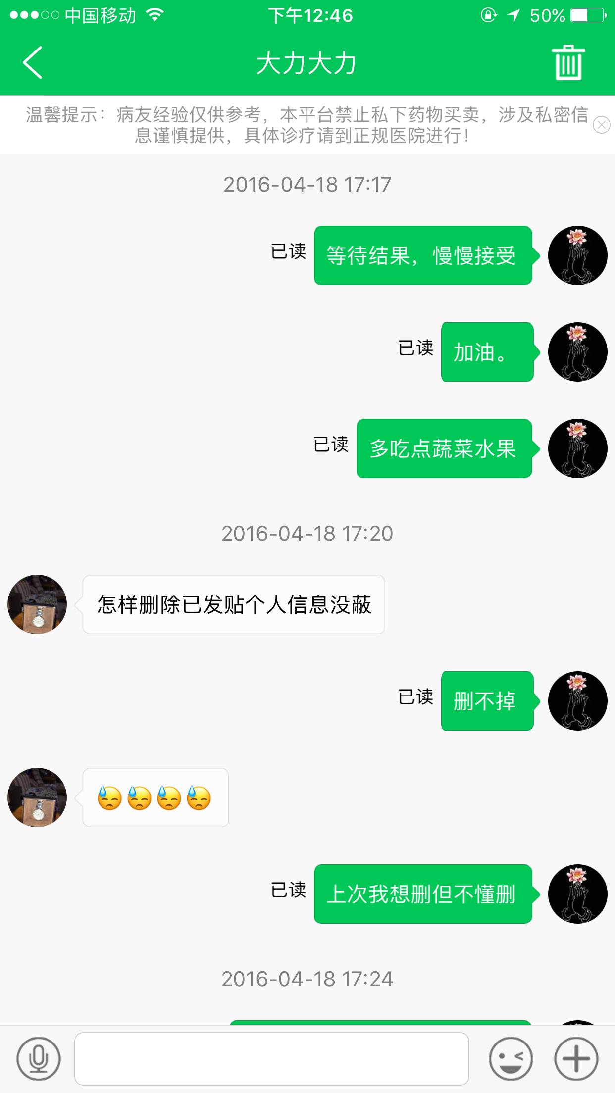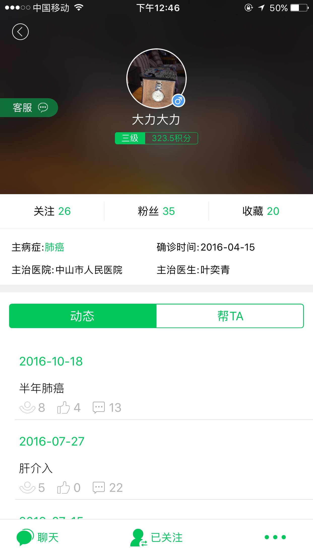 与大力在这个平台认识是去年的4月份,那时大力也是检查到肺癌,后来的更新文章显示他化疗都有进步,已经一年多了,我一直在留言为他加油,想知道他是否安康?也祝愿他安康。