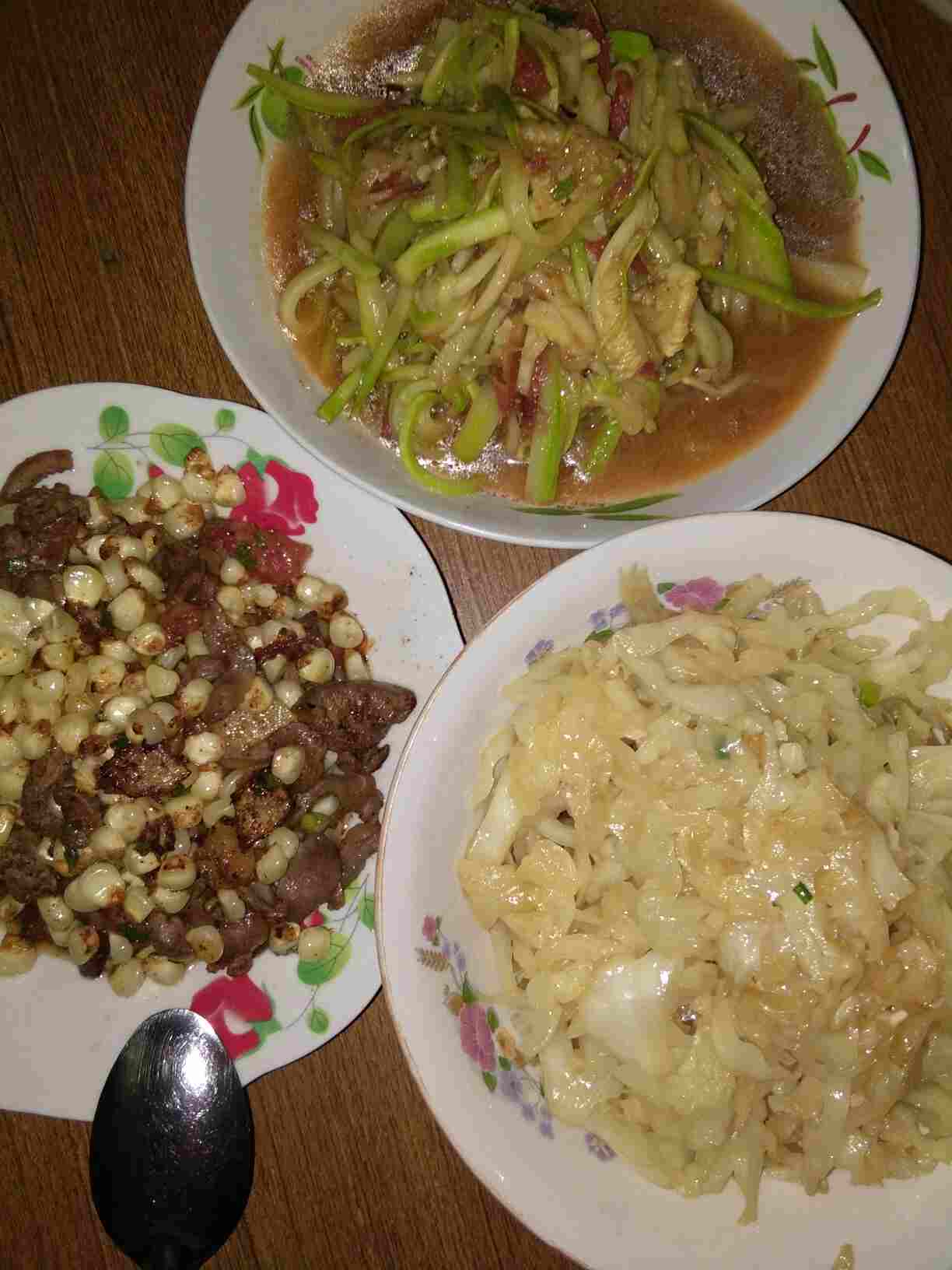 下了一个星期的雨,今天总算出太阳了。热死了,就开始打扫家里卫生。洗洗洗,擦擦擦。从早上起来吃点饭一直忙到现在,累死了。做了三个菜。炒小瓜,包菜,还有玉米。好好吃一下,宝宝真是又累又饿呀