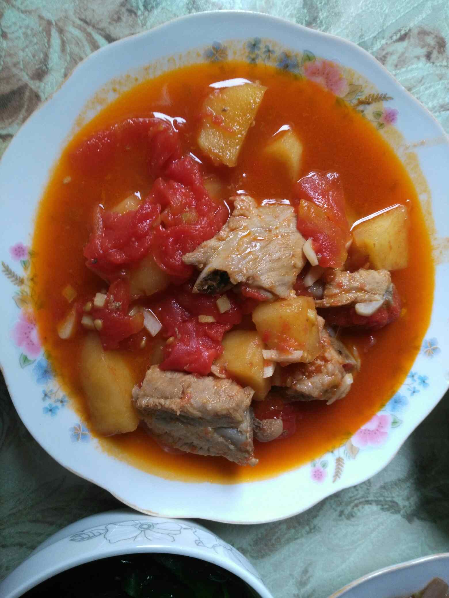 排骨加了蕃茄和苹果,味道真好,是道开胃菜,孩子一定喜欢吃。