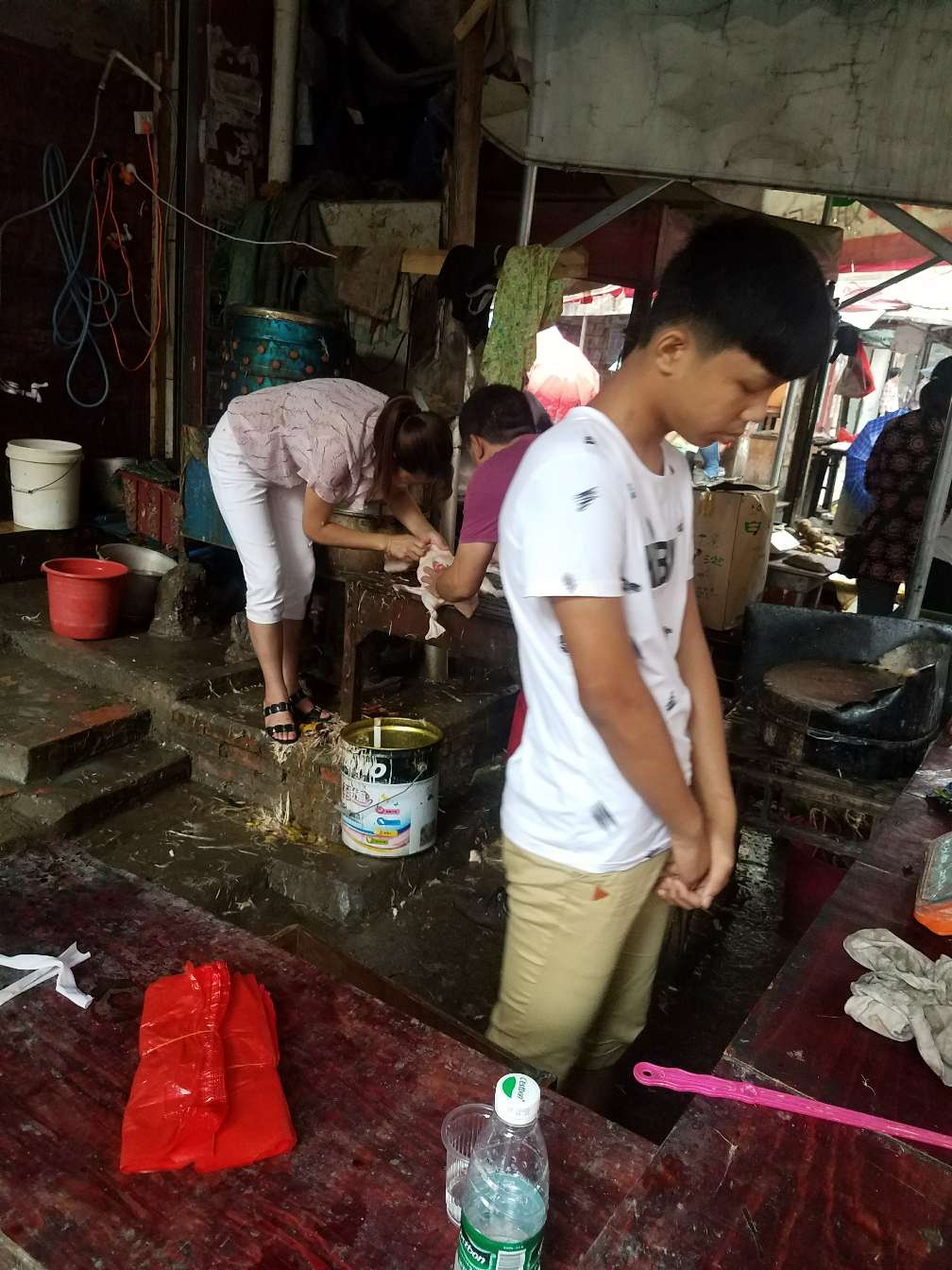 小菜买好了还没买肉,走着走就想到了,今年还没买过鸭子吃呢,于是就想去买了,刚好我去的时候,老板和老板娘一起正在杀。