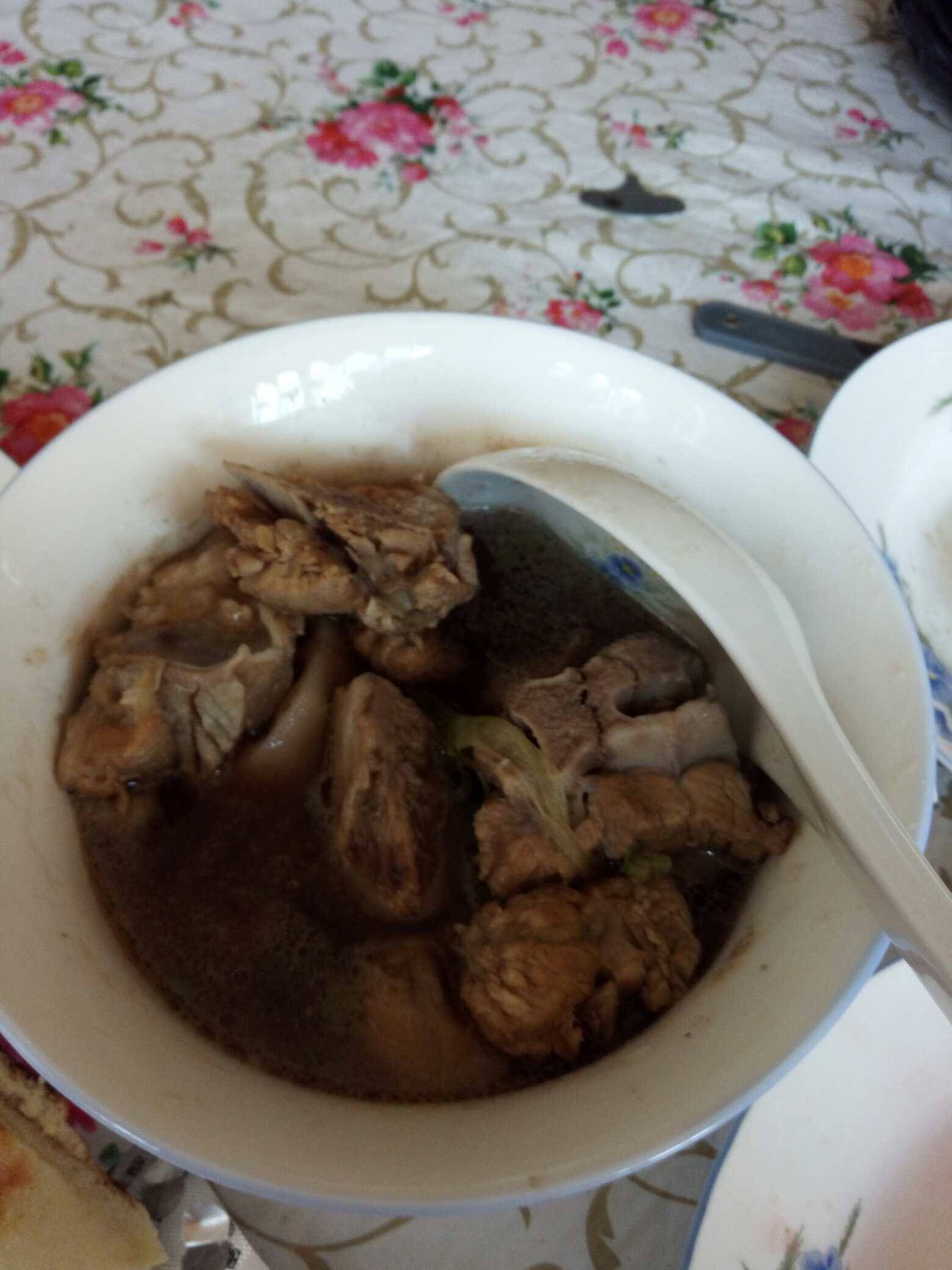 嘻嘻,正在期末考,奶奶炖了排骨汤给我补一补。😊😊颜色虽然不好看,但是真的很好喝