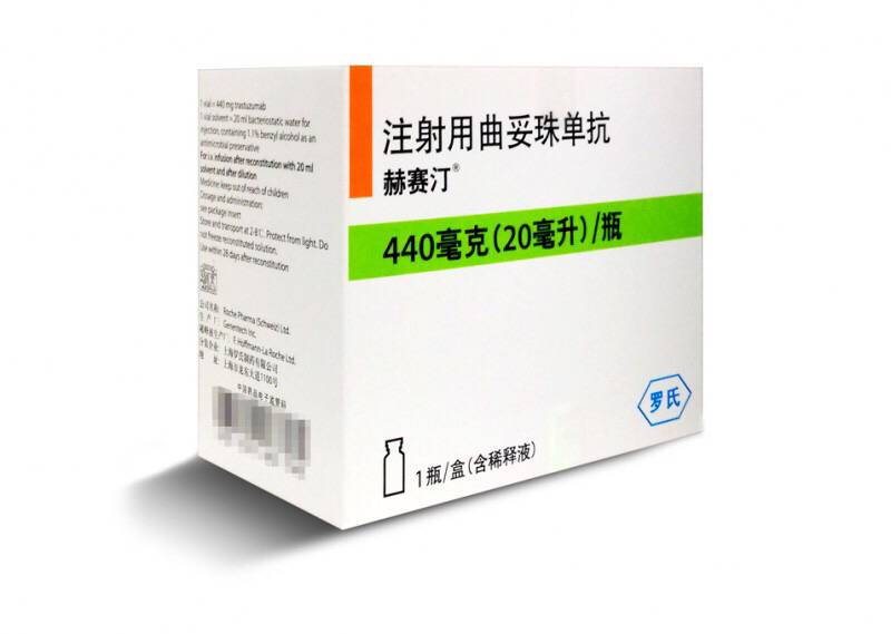 目前中国能买到的曲妥珠单抗是每支440mg的冻干粉针剂加含有特殊防腐成分的灭菌注射用水20ml。用曲妥珠单抗包装配送的无菌注射用水配置的溶液在2~8℃下可保存28天,并可多次抽取,供多次使用,避免浪费。