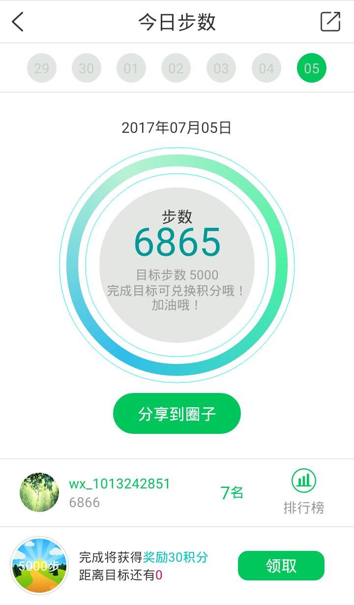 今天计步器头一次发挥功效,分享一下,不会打搅大家吧