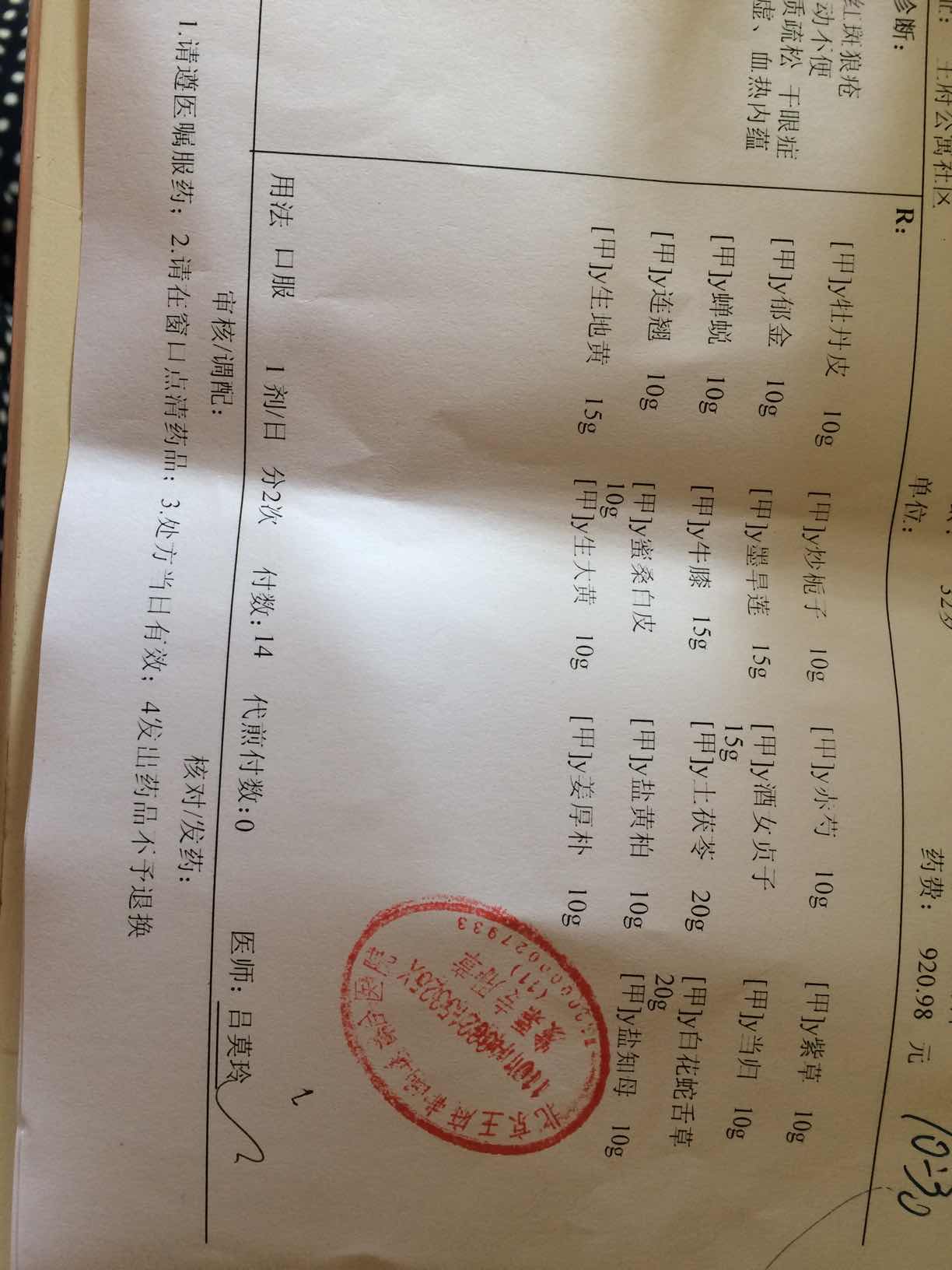感觉你这药方不是很好,没有怎么对症处理,像我喝的中药,品种少,也便宜,效果还很好,你这药多出来肯定一大碗。外面的中药都是这样的。我也喝了五六年的中药,最开始是清热解毒,去内热为主,在中医里来说,我们这病就是血液热。后期我以调理为主,吃西药有副作用,所以后期就是补血补气健脾健胃的。前期喝的多,一周休息一两天,后来慢慢减少,我每包药都才几块钱,不过我是医药公司批发过来,自己称好,呵呵