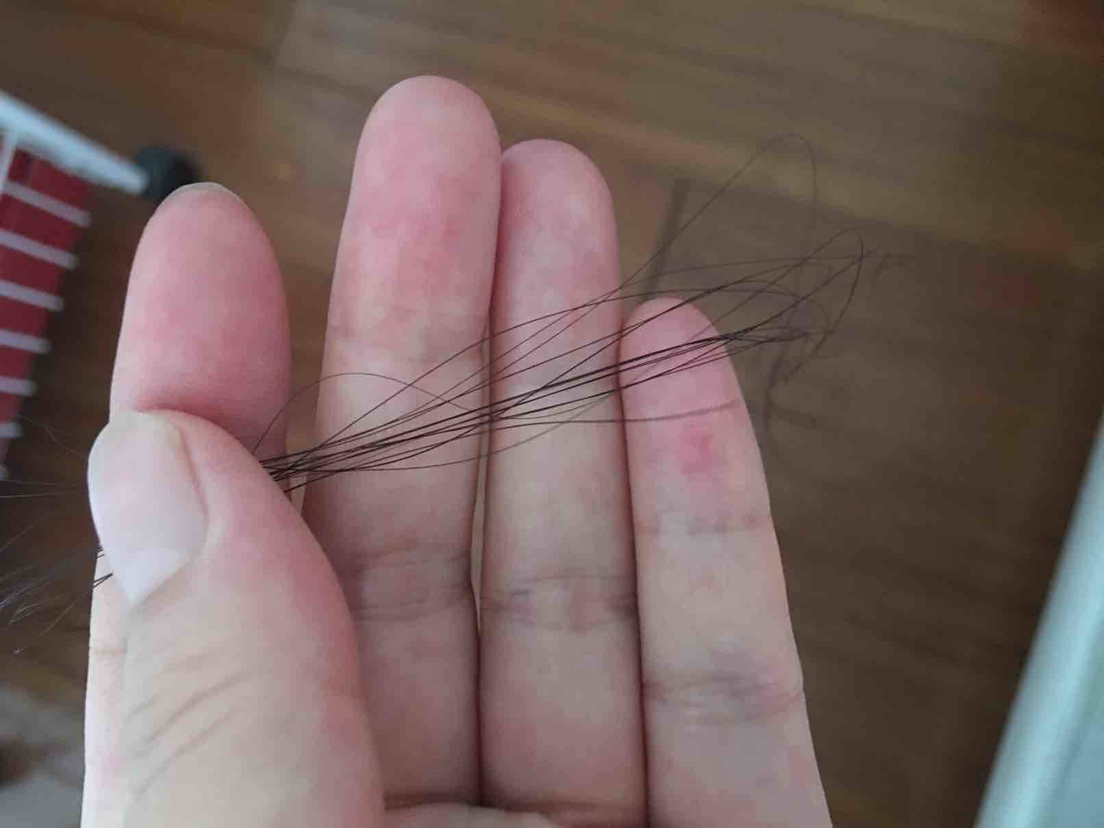 剪了短发后有点掉头发,掉的白色的,后掉的黑色的,不是太多,头发还是挺多的。