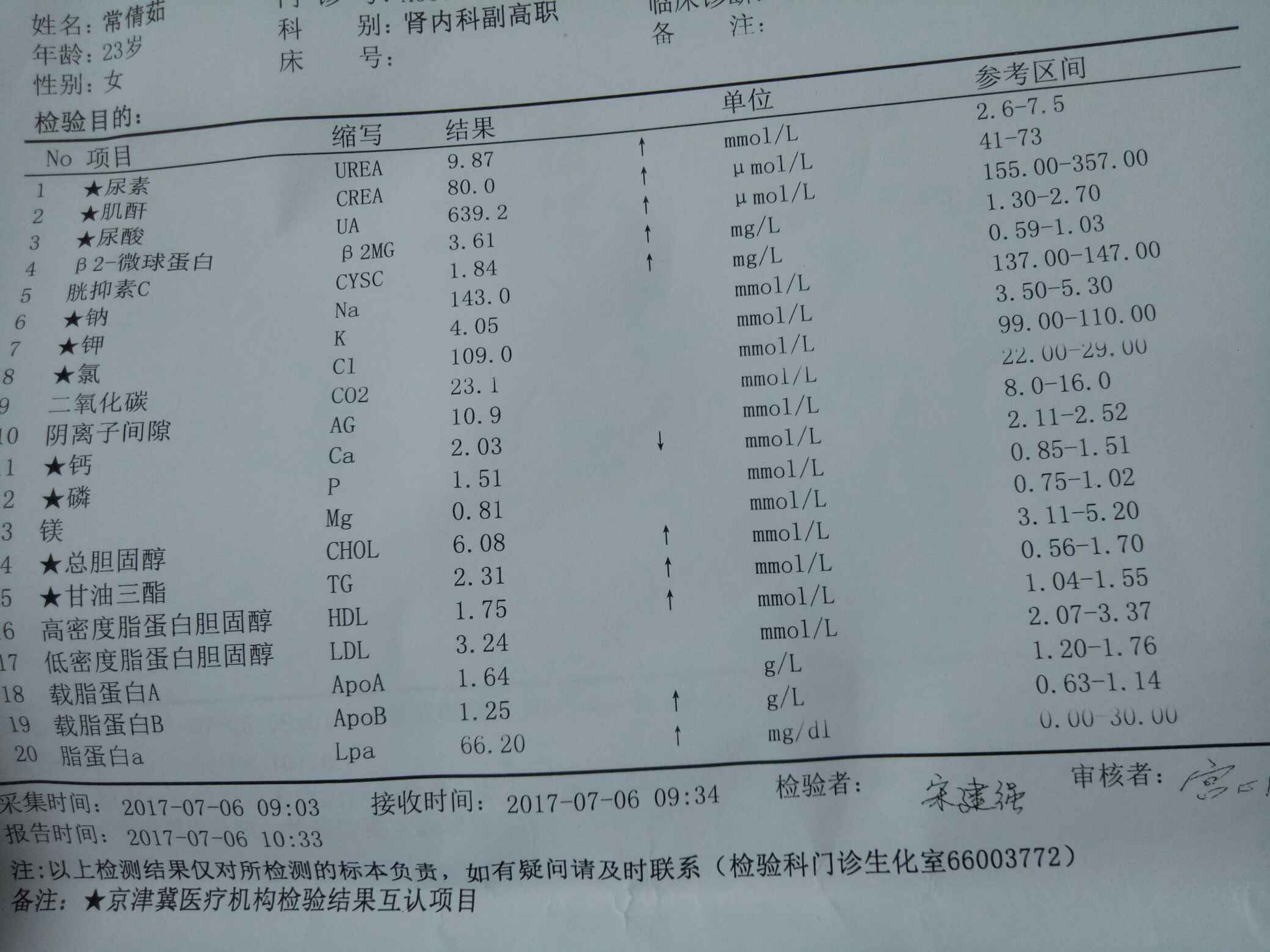 我也是差不多的情况呀!尿蛋白高,胆固醇高,尿酸高,血脂也高