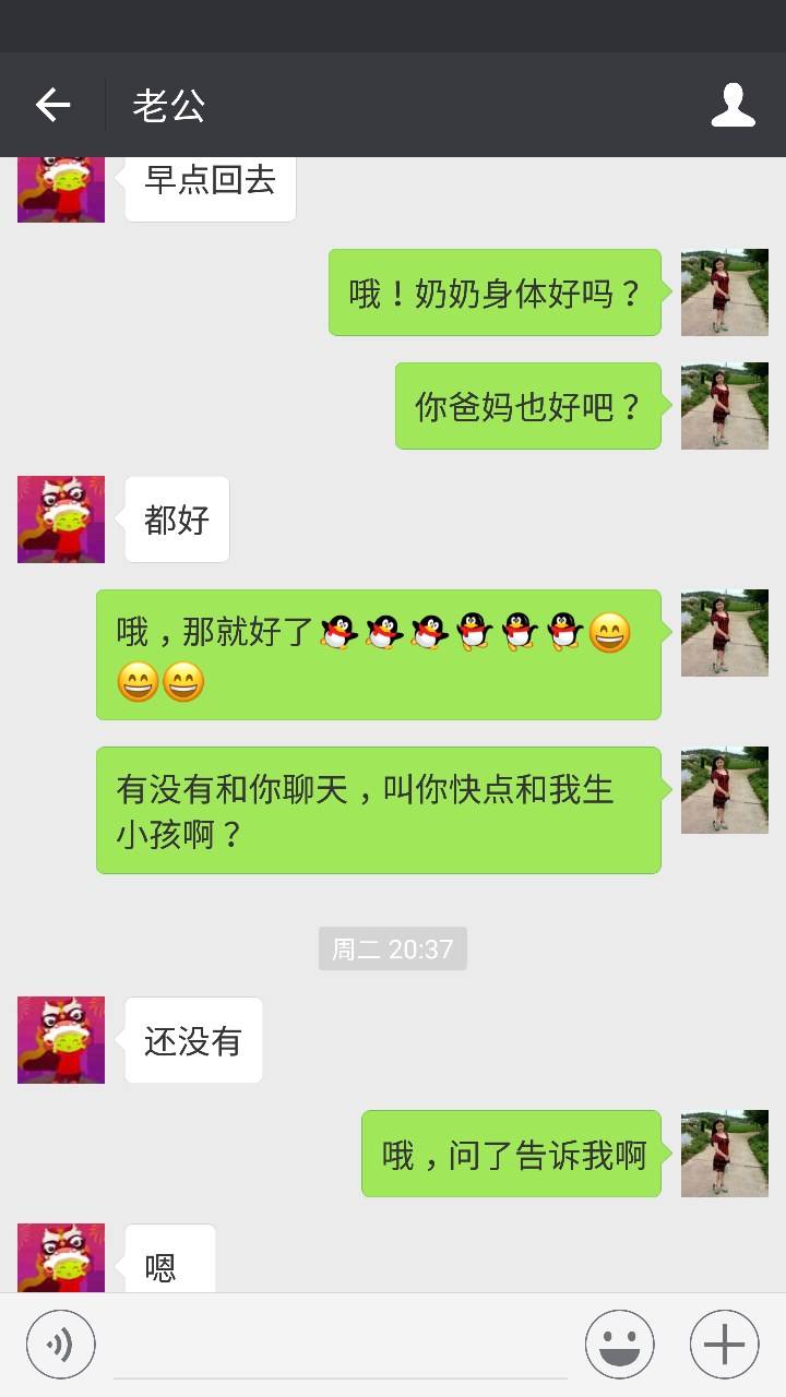 婆婆和我说了这样的话,我就知道老公这次回去了,他们肯定会叫老公和我快点要小孩了。果真我猜对了,老公回去的那晚我就发信息问他了,他说那晚他们没说,如果有说就告诉我。
