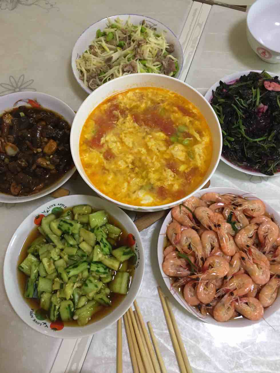 好喜欢那个西红柿蛋汤,颜色好诱人。
