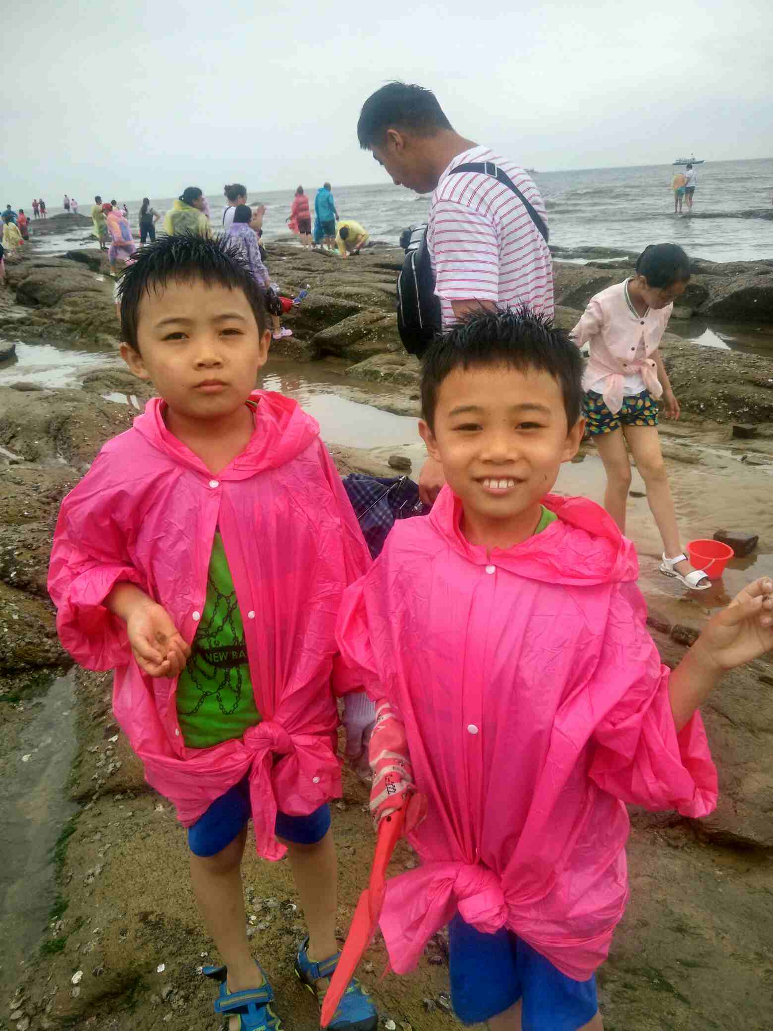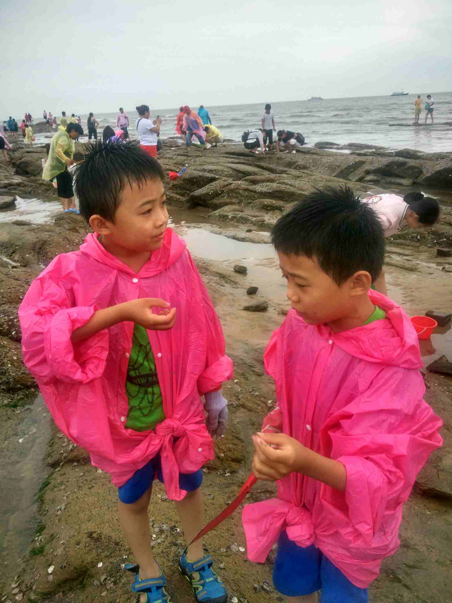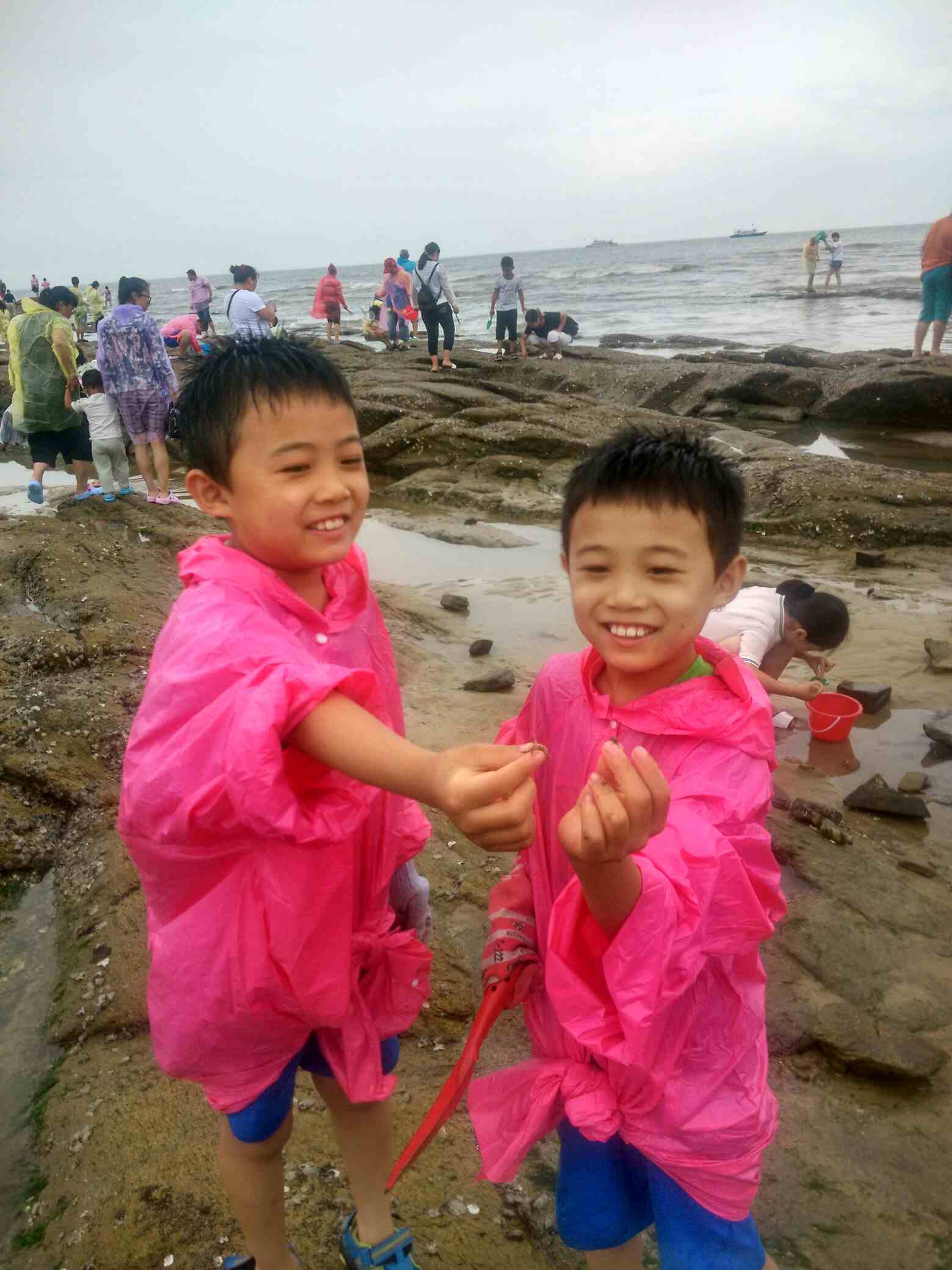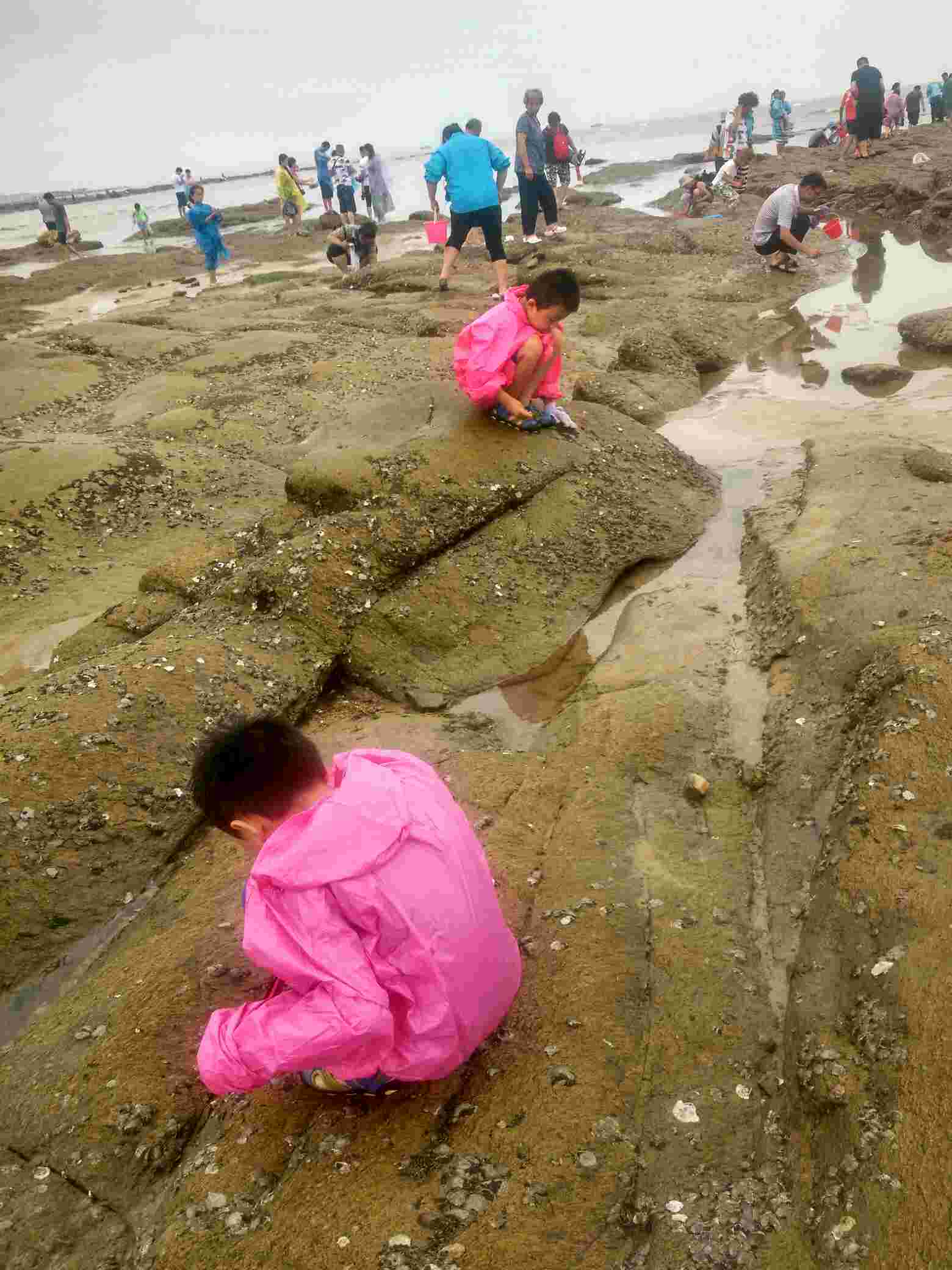 第二天起来阴天,有风,比较冷,孩子们和他姑姑去海边了,我在旅馆没出去。躺着的时候听外面有人和房东理论,让渔家拿碗,盐和热水来,貌似有人不舒服。后来又听说到这么严重赶紧给他一起来的打电话。我忽然想起姐姐同事来,他和我们一起来的,住在另外房间。早上他们叫他,他说不出去了,我赶紧出去,一看果然是他,上吐下泻,肠胃难受。一起来的一个好心大姐在照顾他给他冲了淡盐水。我看他那样子,不吃药是抗不过去了。赶紧问渔家附近诊所位置,速速给他去买了药吃上。诊所大夫说,这种情况很多,每天都有很多游客拉肚子。总结一下我姐同事拉肚子这个情况,内地人,平时吃海鲜不多,螃蟹本身寒性,不能多吃。昨天吃饭他吃了螃蟹贝类,涮菜,饮料,比较杂,重点感觉那些螃蟹并不是很新鲜了,吃的时候没有吃醋和蒜,吃海鲜要多吃醋和大蒜。餐厅没有提供热水,都是冷的饮料。晚上回来他又去海里游泳。夜里本身比较冷,晚上又开着空调睡觉。多方面原因,导致他肠胃不舒服,并且发作比较早,为什么说他发作早。因为上午又增加了拉肚子的人员。下午二姐也开始不舒服。给大家提个醒,海鲜吃的时候要注意点,螃蟹要吃活的,死的最好不要吃,吃的时候多吃醋蒜,吃完别吃冷饮,西瓜,冰水,多喝些热水。下午回来路上到了莒南服务区,其他地区的很多种游客也有上吐下泻的情况。那天去的那个酒店是导游推荐的,据说当天截止到我们接待量有5000了,估计中招的人不少。中间还有一个插曲,因为上午一直在下雨,去赶海的时候有个大姨,没踩稳,摔倒了,摔倒都是海蛎子壳的石头上,脸上擦破好几块。后来又去包扎的。大家出去玩的时候一定也要注意安全!