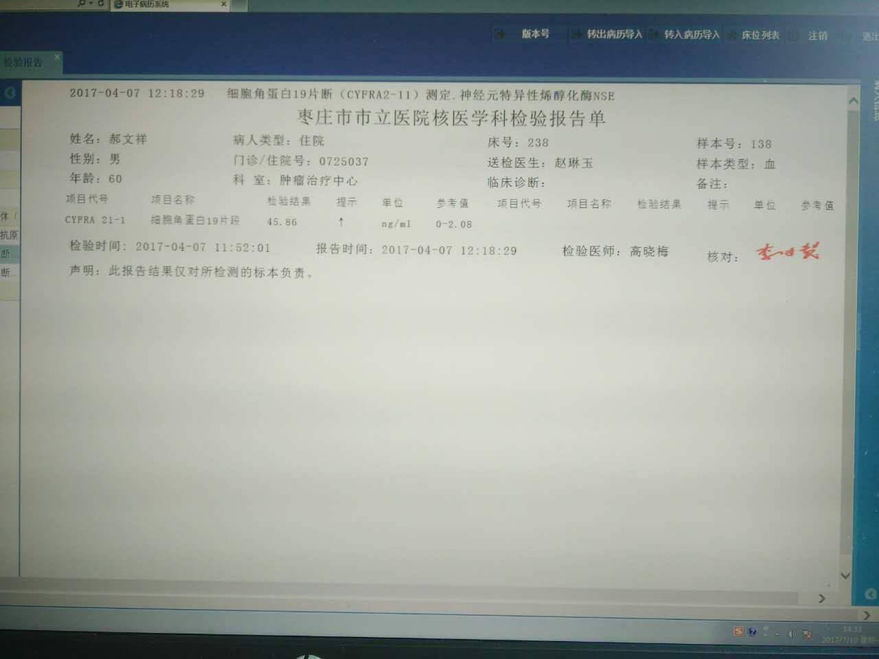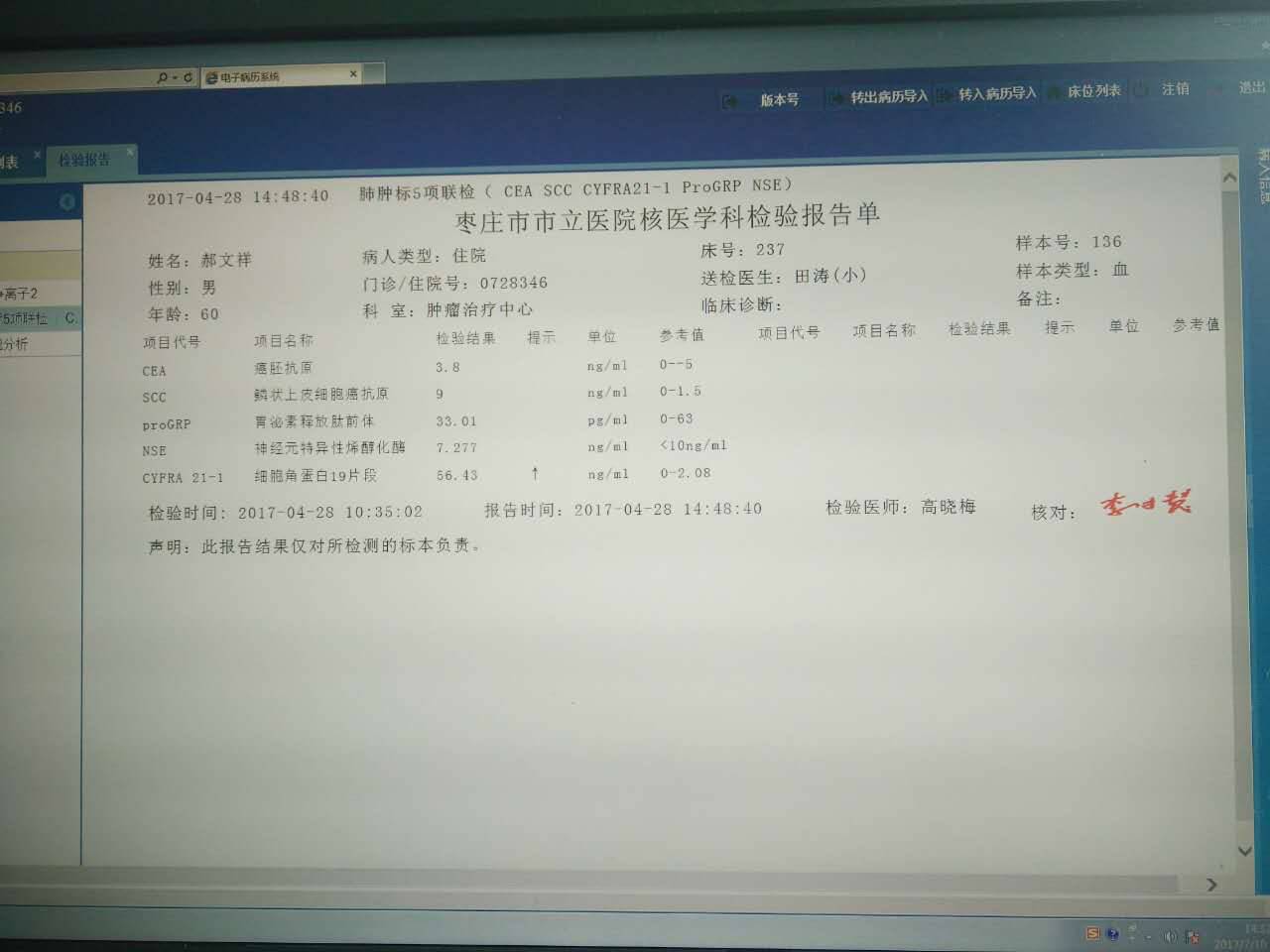 肺腺癌的直接反应标志物,高了要赶紧看医生查CT