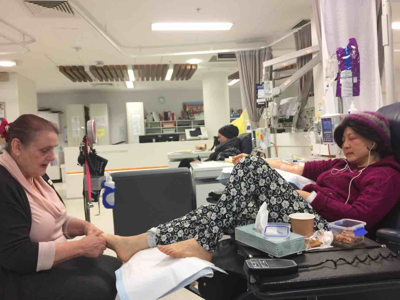 化疗不是植入管子的吗? 最后一张图是干什么呢?足部按摩吗?
