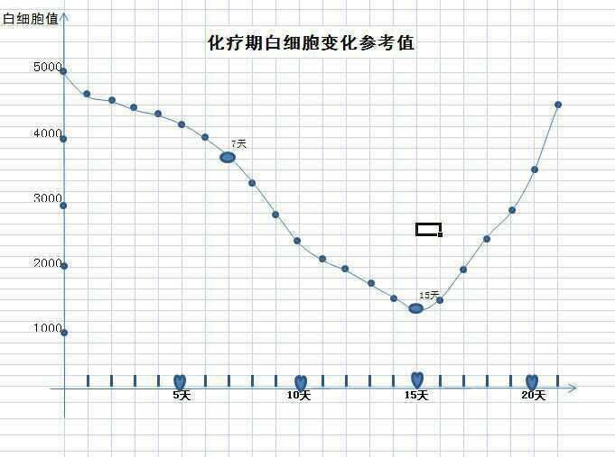 这个图是红药水的记录,曲线呈Ⅴ形,每个人掉小白最低谷不一样,我是第十一天,紫杉醇药的曲线是U形,我的最低值是第五天,