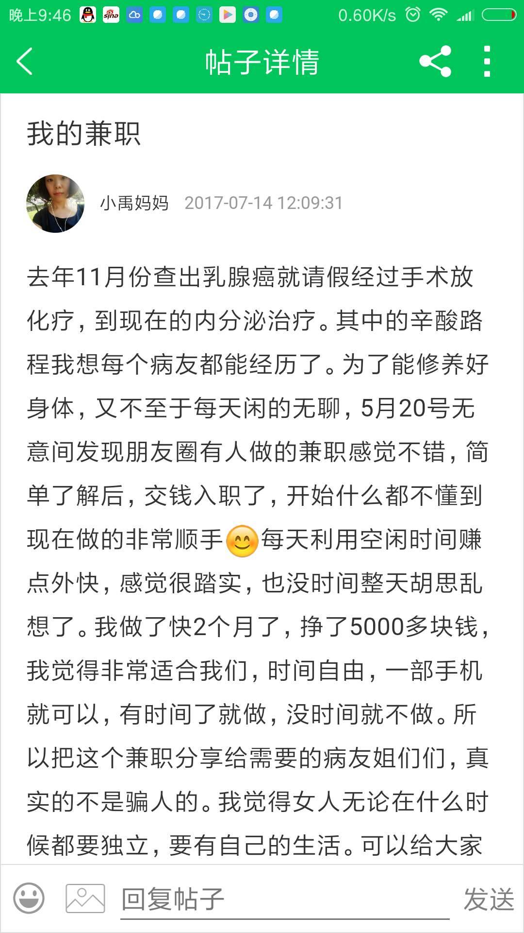 就是那个叫小禹妈妈的骗了你吗?她发的兼职一文