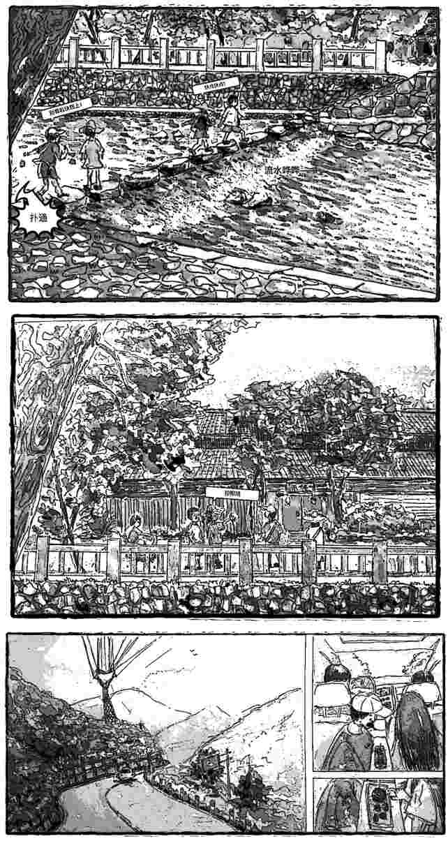 上次去四明山玩,回来后她说要把我们这次的旅游画成连环画,现才画了几幅,可我已经迫不及待要发上来,好有意思,我们都成了画里的风景,姐妹们快找找哪个是我哦。