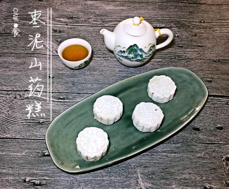山药带皮蒸15分钟,捣成泥备用;红枣煮20分钟,泡三个小时,去皮去核,加油和红糖用面包机的果酱功能做成枣泥;糯米粉微波叮熟,做薄面备用;取30克山药泥粘薄面压成皮,包入枣泥,用月饼模压成型即可。