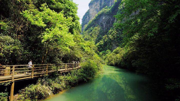 走过桥面,乘峡谷电梯便到达谷底,彩虹瀑布、圆桶绝壁、飞狐下山、一帘幽梦等精华景点令人目不暇接,还可体验惊险刺激的高空滑索。最后乘船游览神泉湖,湖面鸳鸯戏水,船上山歌欢唱,让人沉醉于这世外桃源,久久不愿离去。