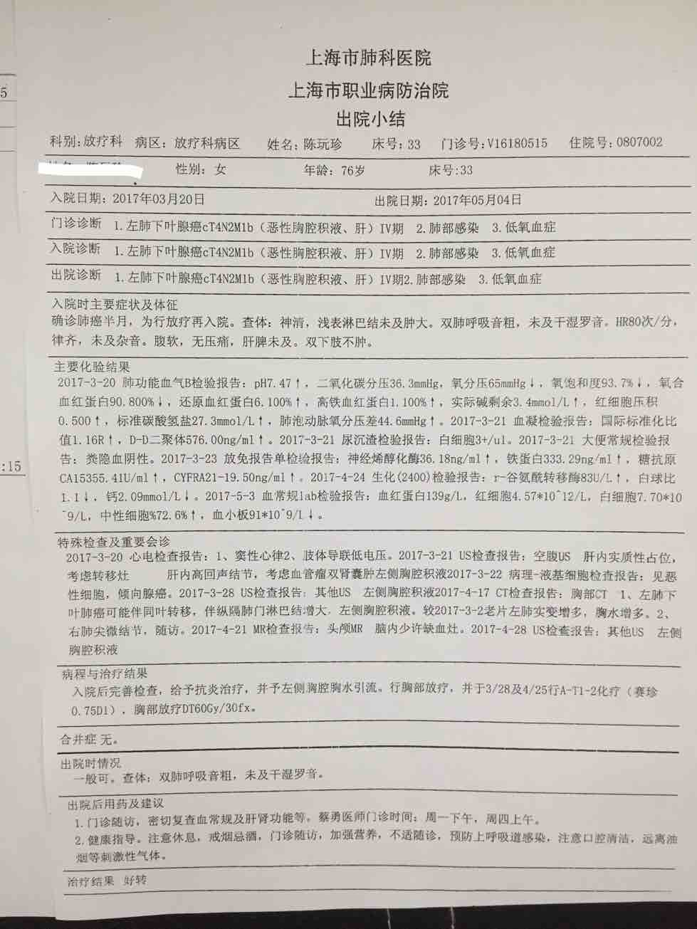 陈波医生肺部CT也看了,左肺不张合并阻塞性肺炎为主,其他部位没有间质性肺炎表现。所以搏免疫治疗还是有机会的