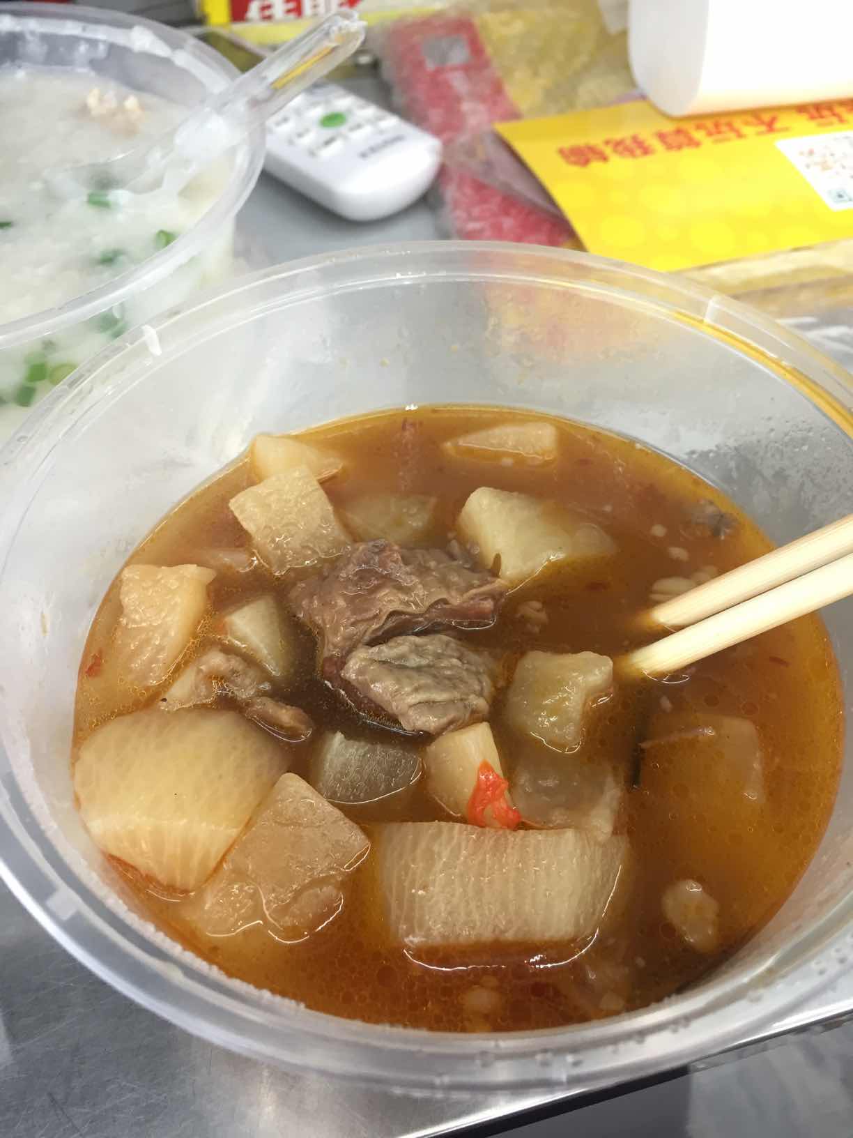 叫外卖的 好大一碗排骨粥 ,还有一份萝卜牛腩