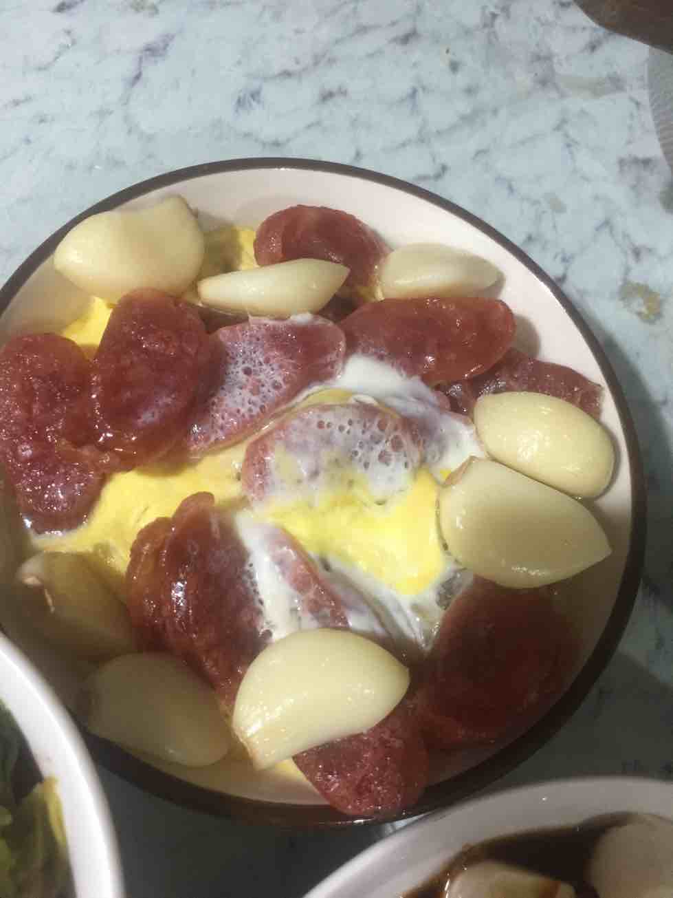 鸡蛋腊肠大蒜一起蒸吗?