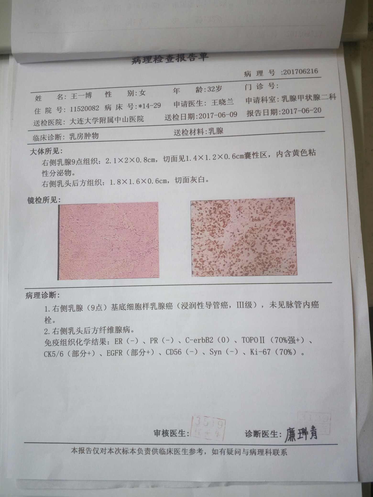 我是6月9号手术确诊的三阴乳腺癌,那几天哭的天天金鱼眼呀!好消息是早期没发现淋巴转移,坏消息是组织学分级是三级,恶化程度高……