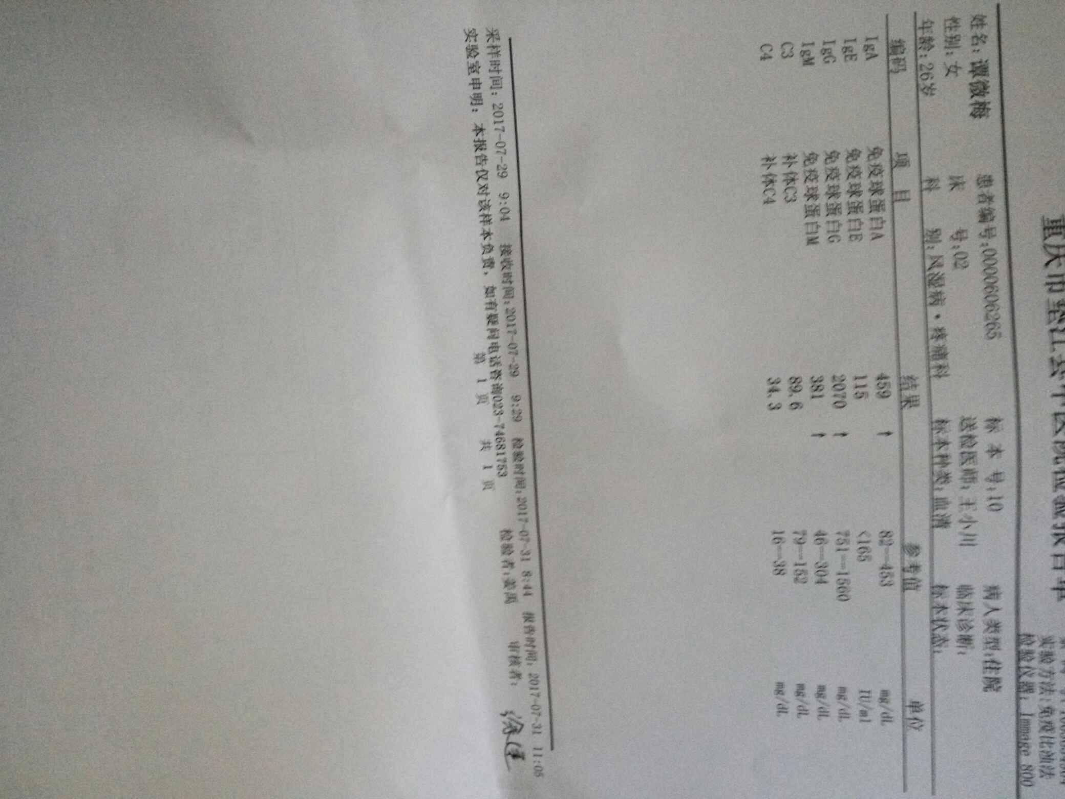今天在医院纠结了半天还是决定打白介素了!在医院打了两支!!拿了10支回来打!打完就去复查看有没有效果!有效果就在打一个疗程!那几天查的结果也出来了!都还算平稳!只发了指标有问题的几张
