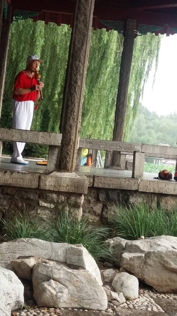 姐妹们,早上好。欢迎来济南大明湖玩,清风徐来,水波不兴。遥襟甫唱,意兴遄飞。老人一曲葫芦丝《月光下的凤尾丝》,清幽安宁。酷暑渐渐远去,秋雨悄无声息,四时佳景,心旷神怡。