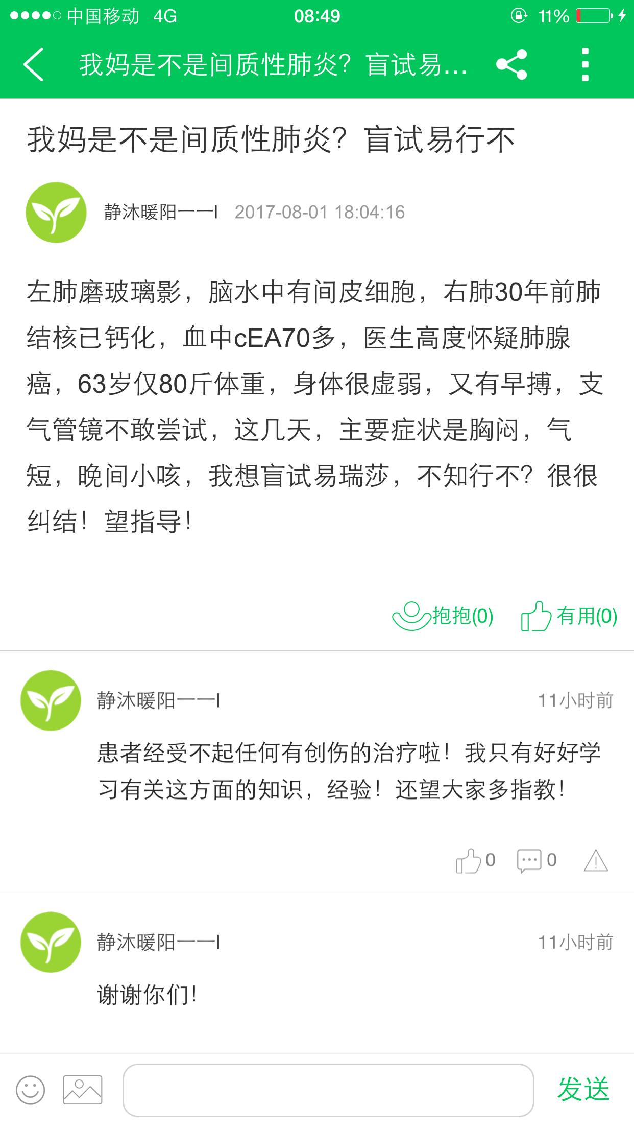 陈波医生磨玻璃结节正是肺癌原发灶!与间质性肺炎完全无关,为啥不问问陈医生呢?听说提问提得好,陈医生会选出来展示,让大家去听。分答模式下,提问提得好,有代表性,有广而告之的教育意义,来听的人多了,还能收到小福利。每个来听的人都会分给提问的人一个五角的小红包。
