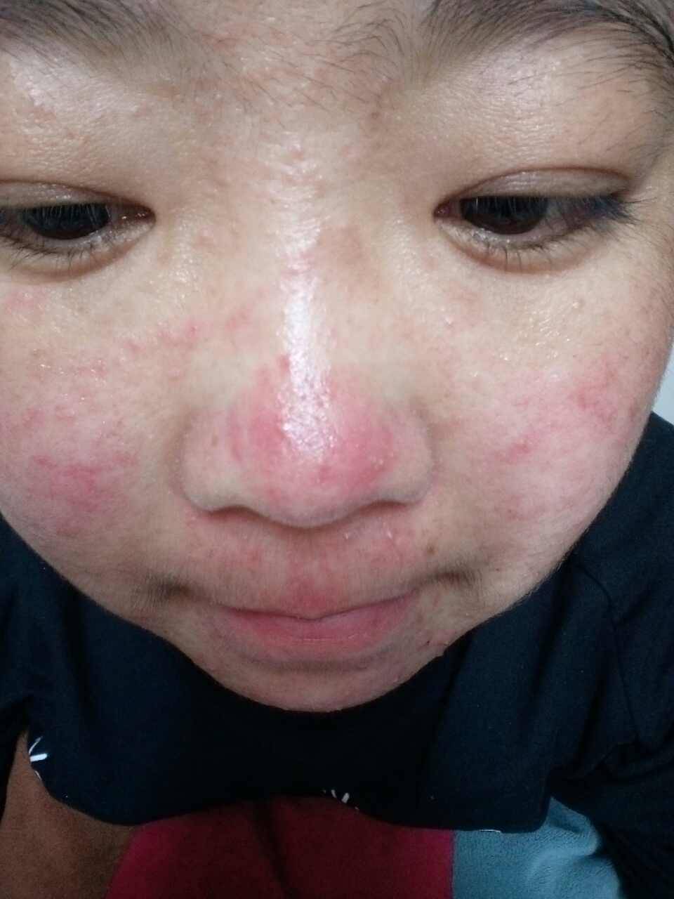 这不像红斑,应该是激素皮炎。清淡饮食,护肤品什么的都停用
