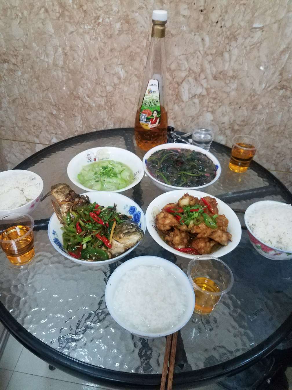 今天做的菜是:清炒丝瓜,皮蛋苋菜汤,红烧鲫鱼,红烧鸡腿😍😍😍