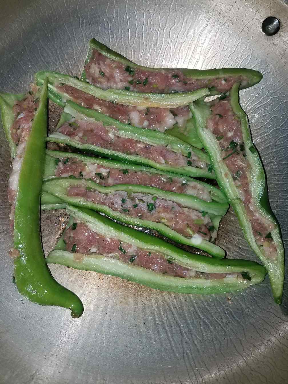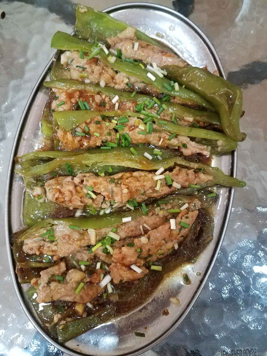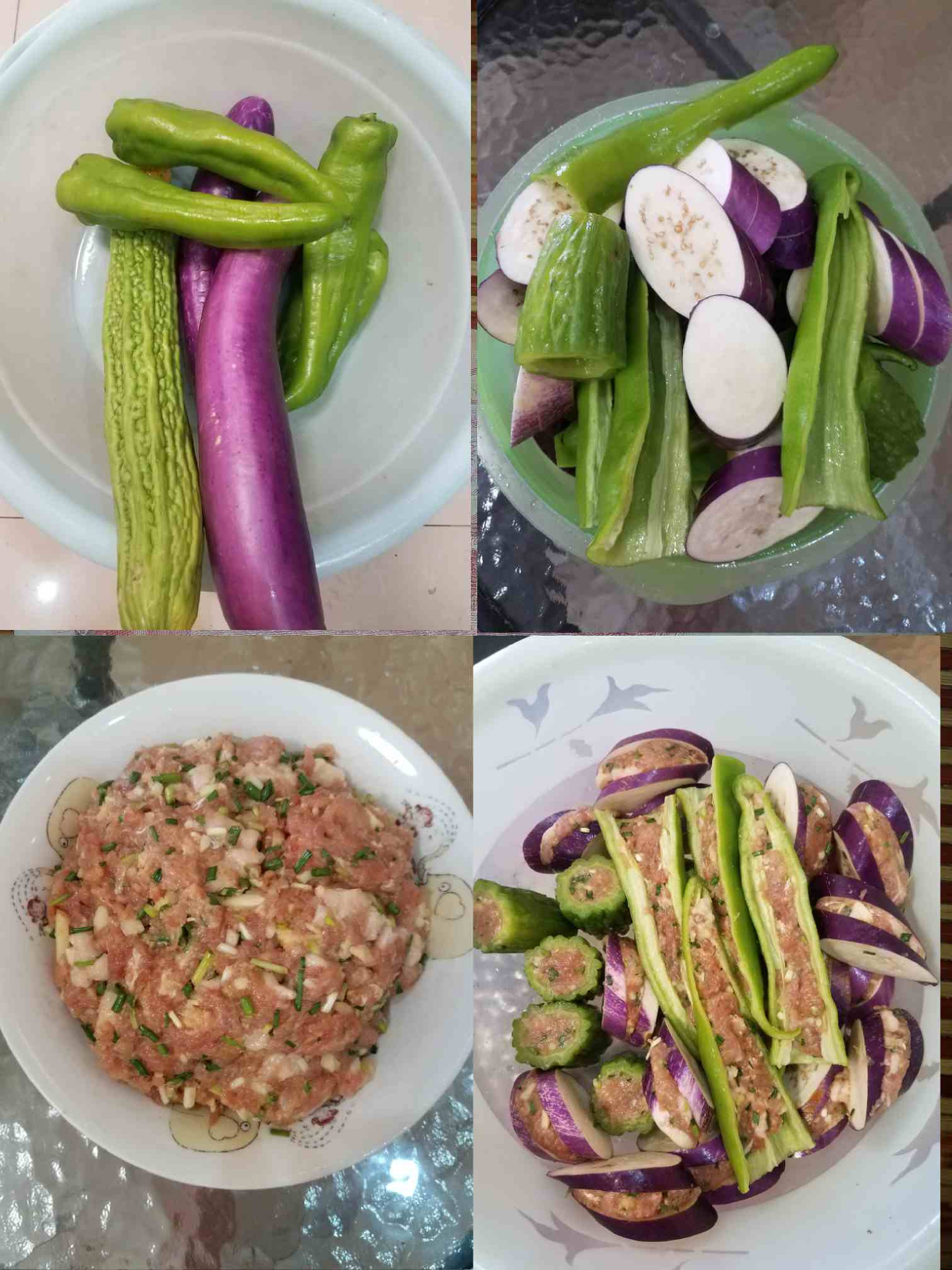 辣椒是昨天和大哥去超市买的,他说上次的酿茄子和苦瓜都好吃,吃了还想吃,但这回要加上辣椒一起,所以今天就又做了起来😊
