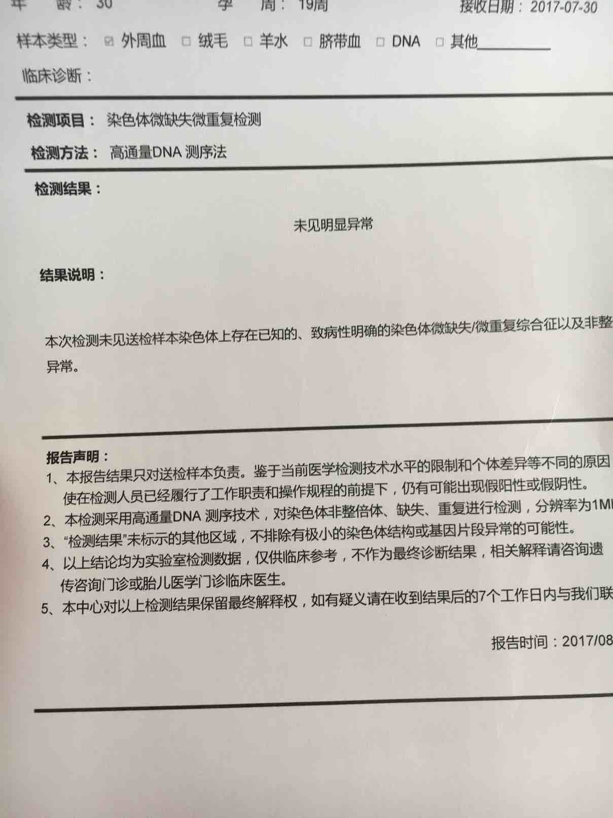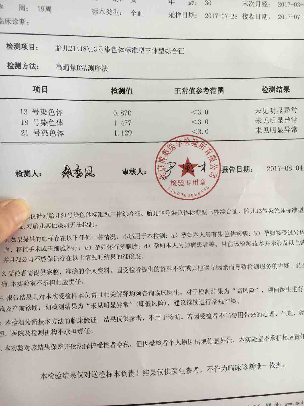 今天产检,医生看到蛋白高了,血色素低了99,正常110.血小板正常,08年复发做过血浆置换,医生就一直担心我的血小板。这几年血小板都没问题。总之把最高风险都评估在内。主治医师觉得问题不大,不要紧,产科呢,说的我总是心理各种担忧和害怕。我不想住院,后来医生开了补体,抗双连化验,两周后看结果吧,实在要住院就住吧,能把蛋白降下来也好,省的每天心理挂念着。这两张就是无创结果,3600。感觉看不出个什么所以然来嘛……