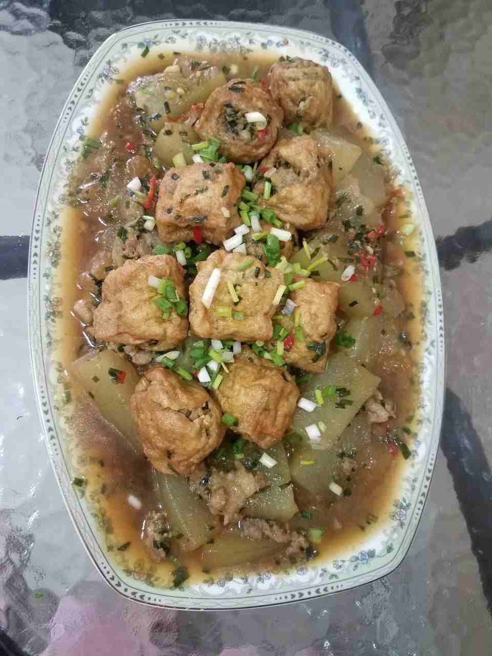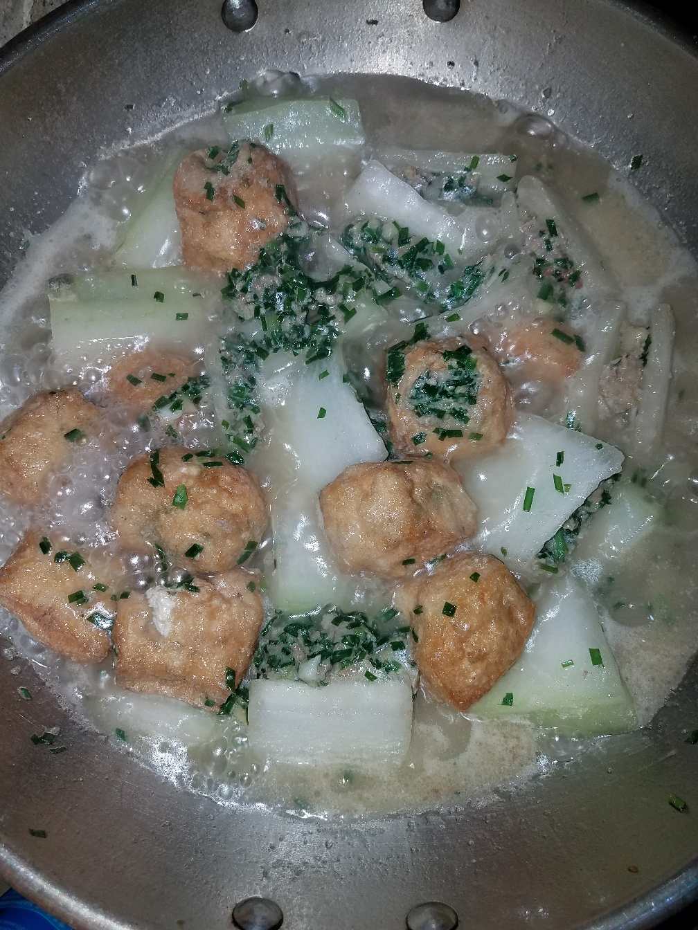 去到菜市场,问大哥想吃什么菜?他说不知道,我说上次你不是想吃酿东西吗?他说是啊,后来他说突然想吃酿冬瓜,我就想到老公爱吃油豆腐,所以两样都买上。