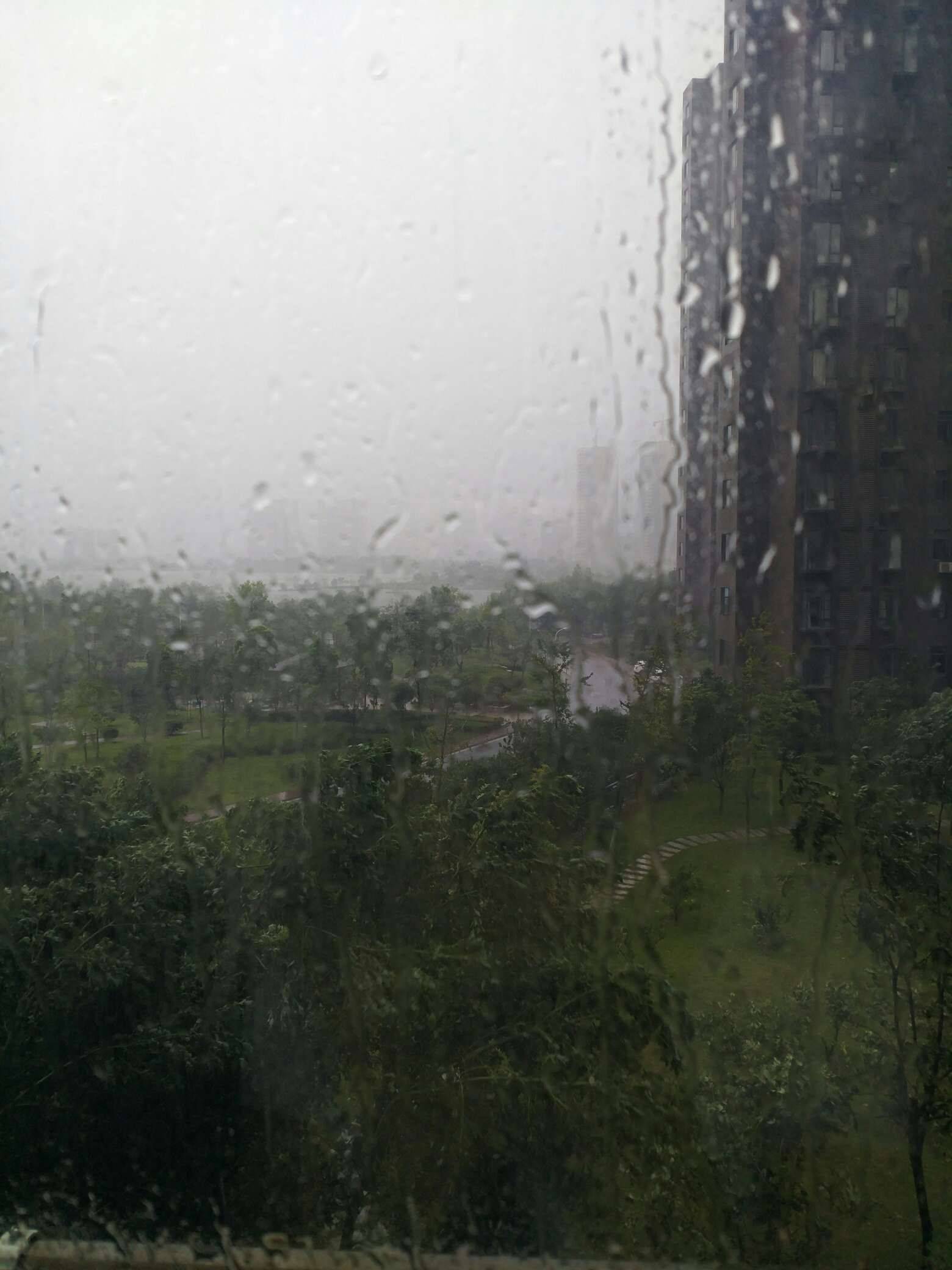 大雨滂沱,狂风大作,天气马上就凉爽了。