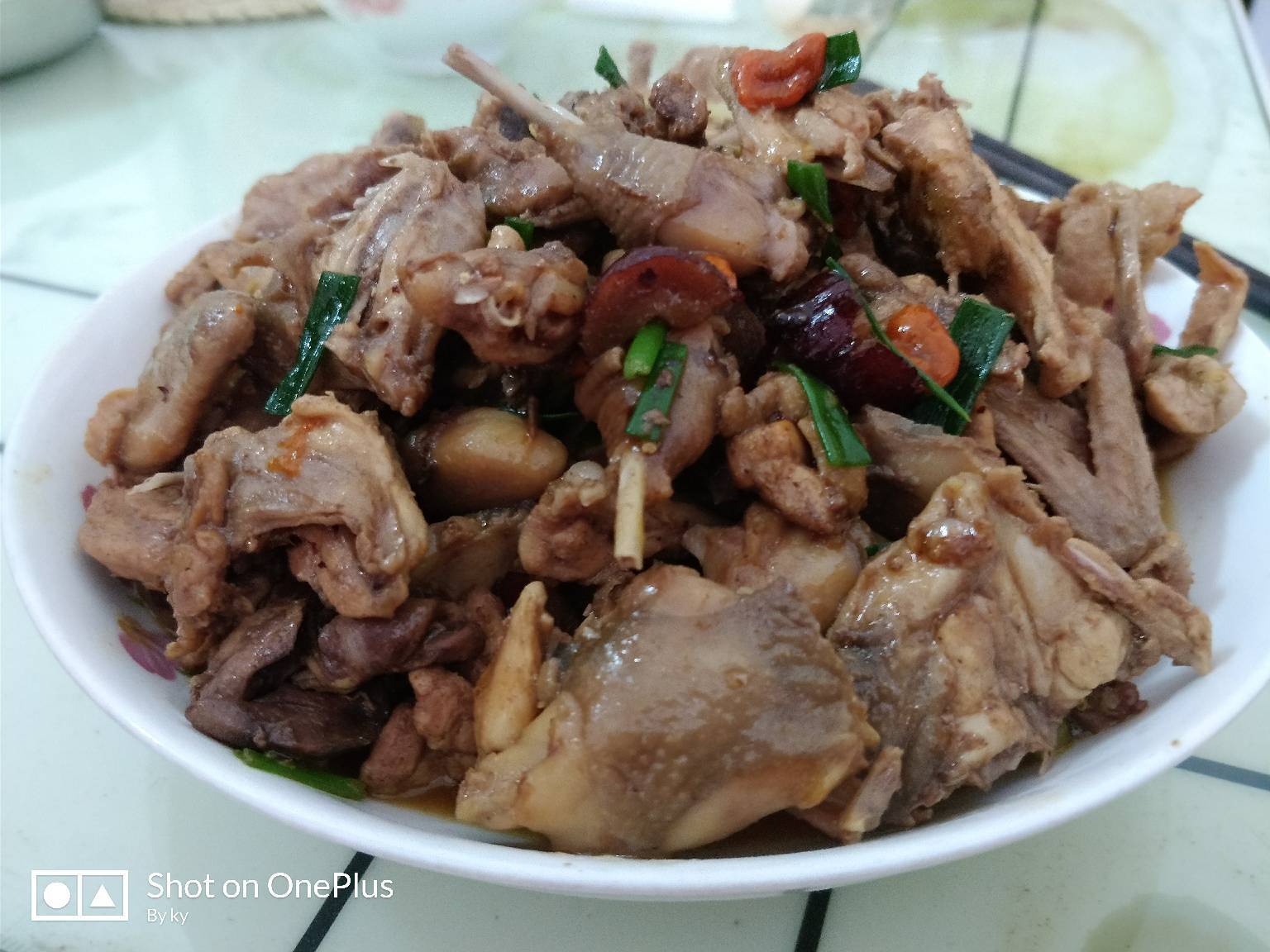 第二,把生油倒进镬翻炒姜和葱头,,再将切好的鹌鹑倒下去,加盐,胡椒粉,白酒,一点点酱油(调色用)。当肉差不多熟了就把红枣和枸杞子倒进去炒,加水接近平面,再盖镬。