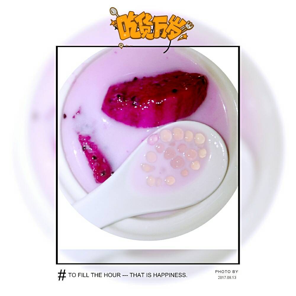 做法:1:准备好材料,火龙果一个、椰子汁一瓶、西米露适量(可依照人多人少酌情加减)2:锅内放入水烧开,把西米露放进去小火慢慢煮,边煮要边不停的搅拌,因为西米露很容易粘锅的,当西米露煮得周边透明时,只剩下中间一点点白芯的时候关火,盖上锅盖,焖上30分钟,西米中间的芯就会变透明的,3:然后把火龙果切好放盘子备用。4:把煮好的西米过下冷水,过好冷水的西米盛入碗中,倒入适量的椰子汁,最后在加上火龙果,如果喜欢别的水果也可以放进去的。(如果喜欢吃冰的可以放入冰箱里,如果要吃热的就加热下就可以吃了。)