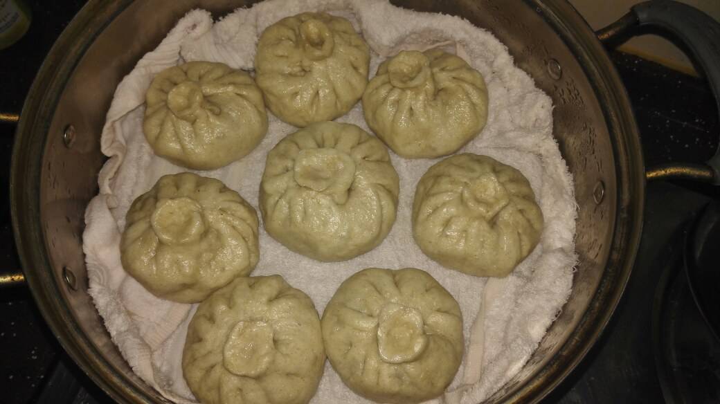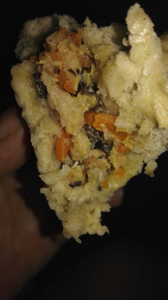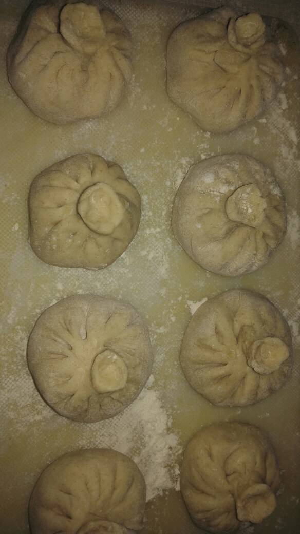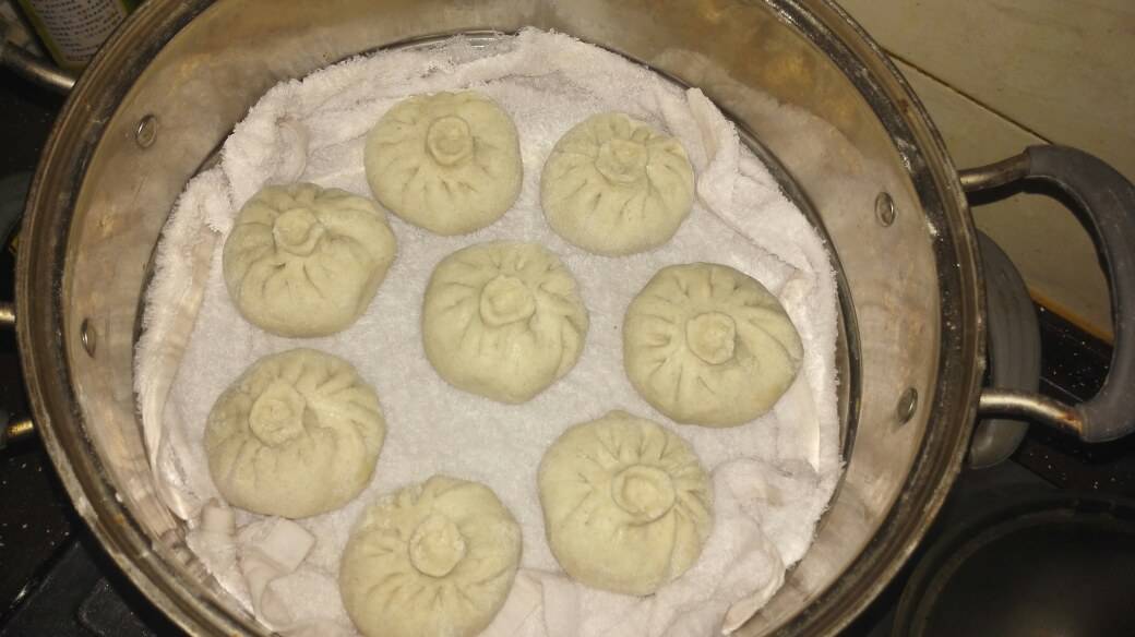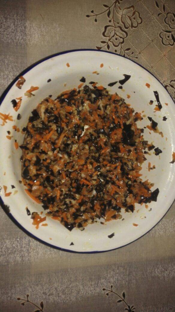 材料是胡萝卜,爱森五花肉,木耳,虾米,京葱斩碎了,胡萝卜要炒一下,调料是油,酱油,盐,姜,黄酒,面是邮购的带麸皮的俄罗斯面粉,放了自己做的酸奶,发酵粉,揉面是面包机,老公剁馅,我包好蒸好,很好吃的!