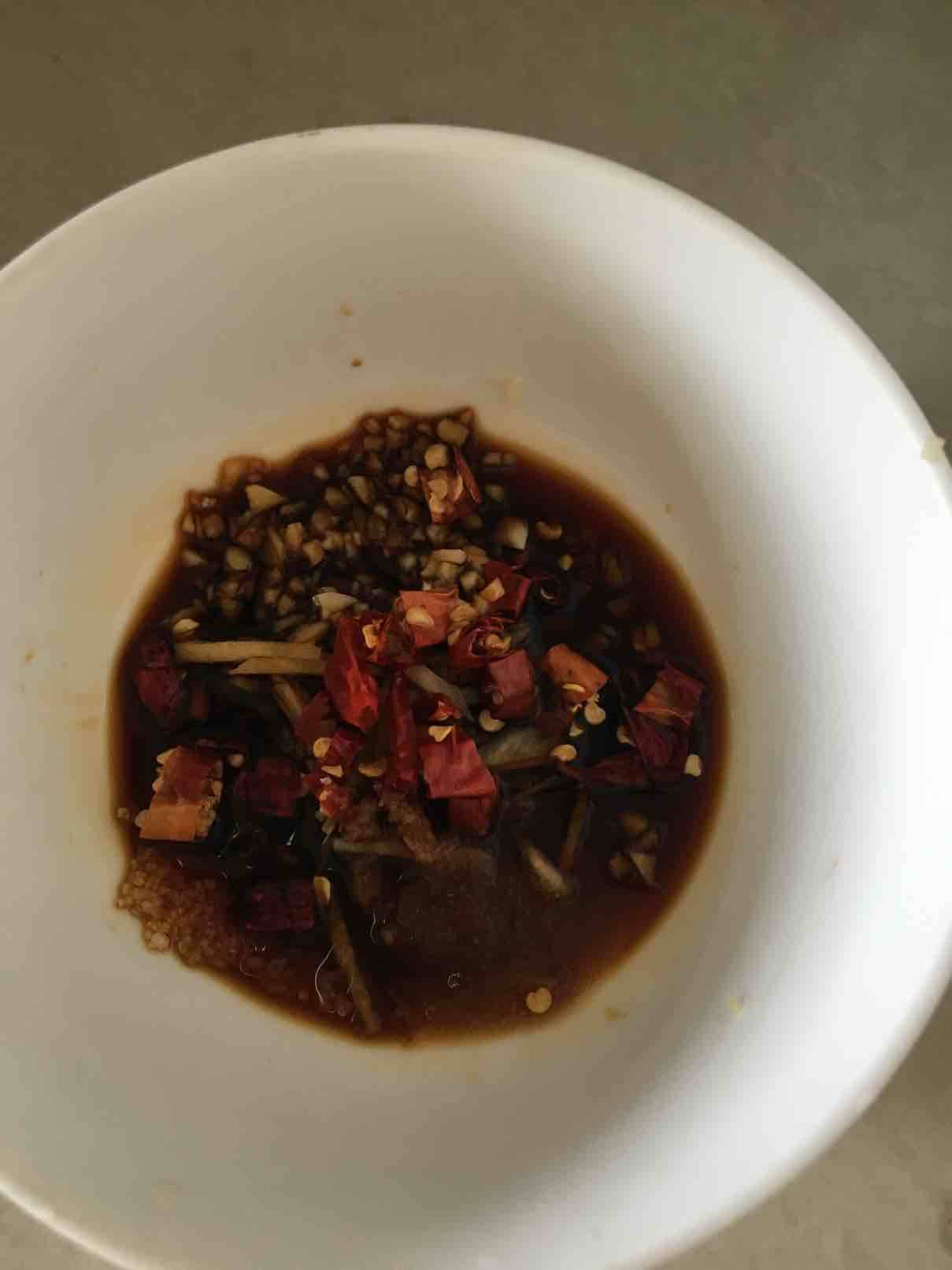 3.锅中烧油放花椒,待油开过漏掉花椒,把油浇到调料上。