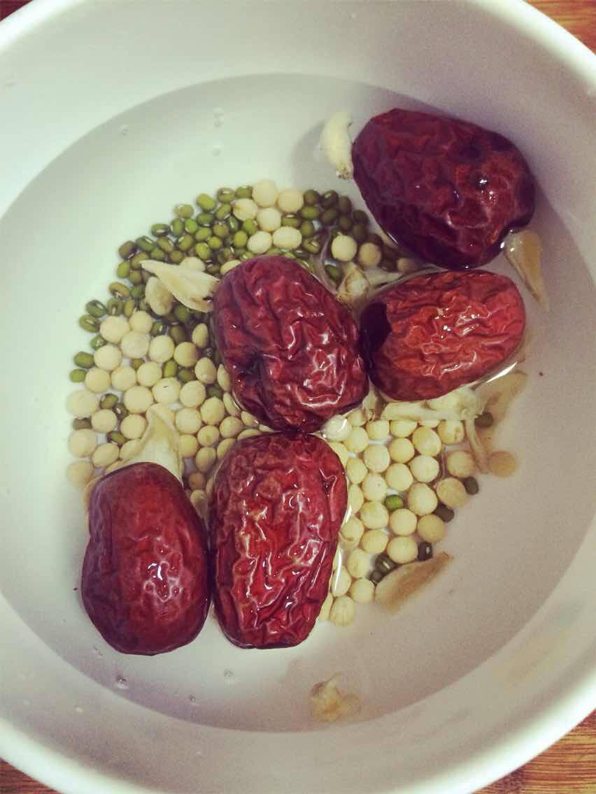 豆浆:黄豆、绿豆、百合、红枣去核(之前问我头发的小伙伴,可以用黑豆和黑芝麻哦)