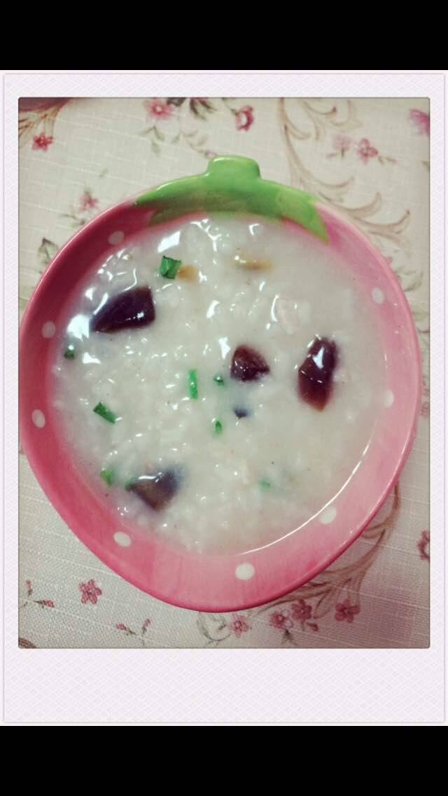皮蛋瘦肉粥:大米、松花蛋、瘦肉、葱花