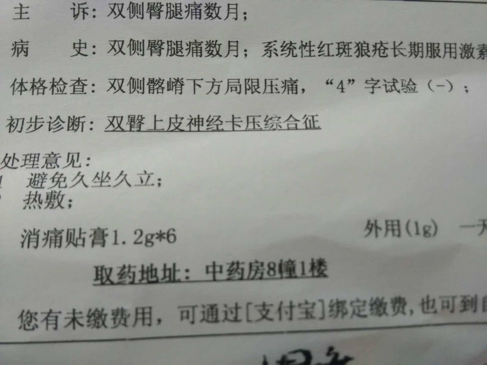 前些日子发帖说大腿两侧偶尔会疼,腰部两侧骨头(髋关节)附近和屁股疼,担心骨坏,所以昨天去骨科看了下,医生说结果是上皮神经卡压综合症(幸好幸好