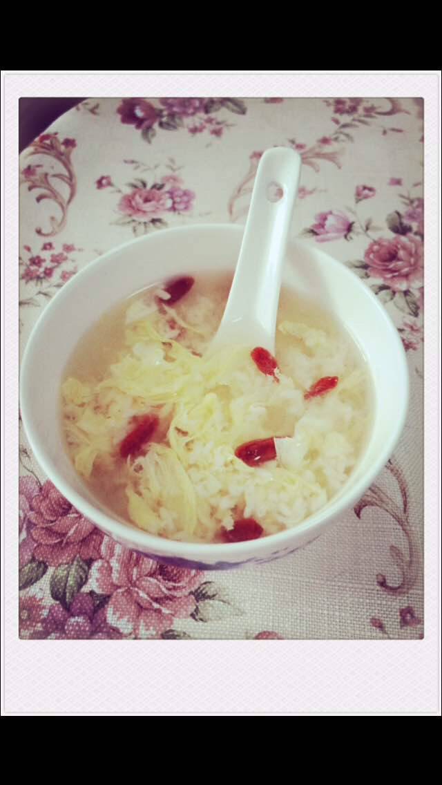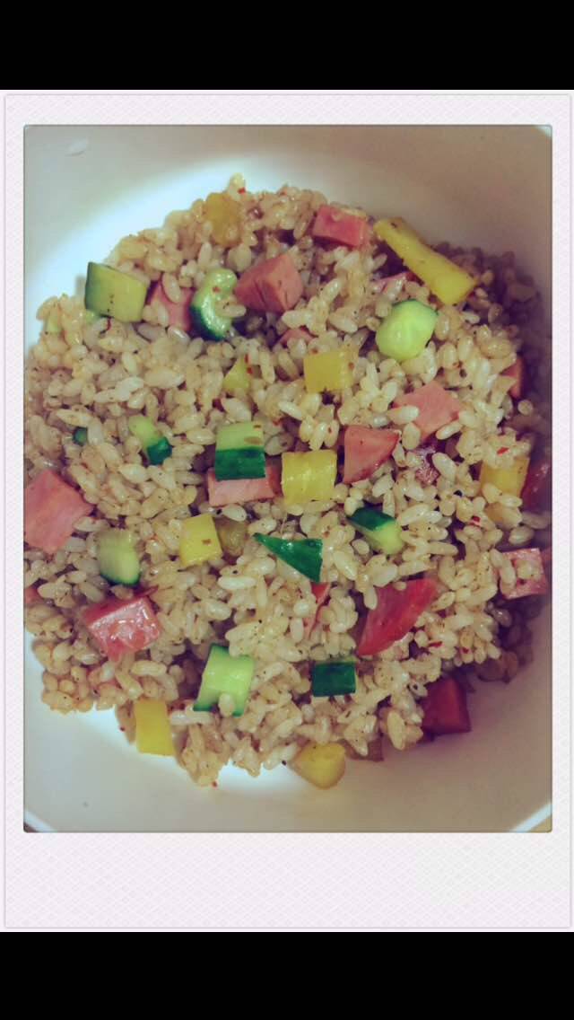 中午简餐:三丁炒米 和 醪糟蛋花汤
