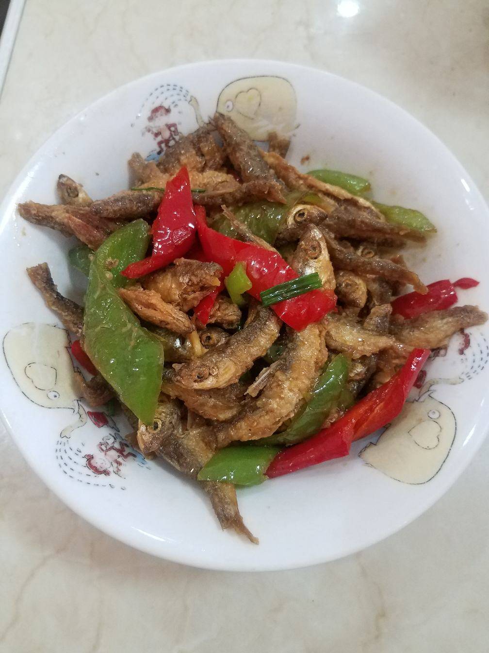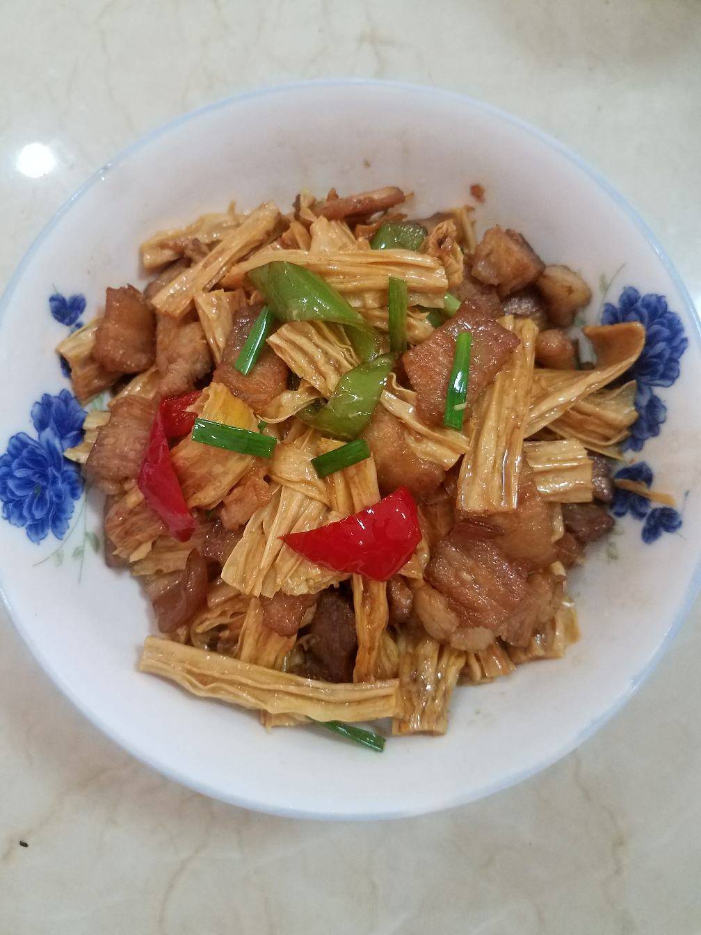 今天做的菜是:辣椒煮鱼干和五花肉煮腐竹