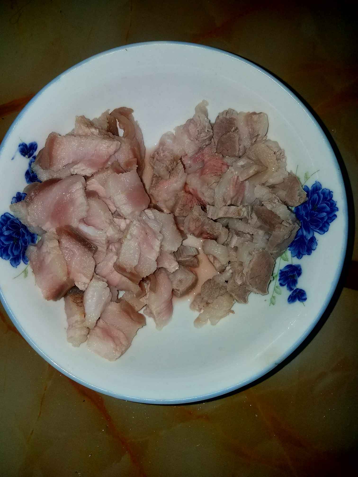 1:五花肉清洗干净,锅里烧水煮熟焯水,再切片。