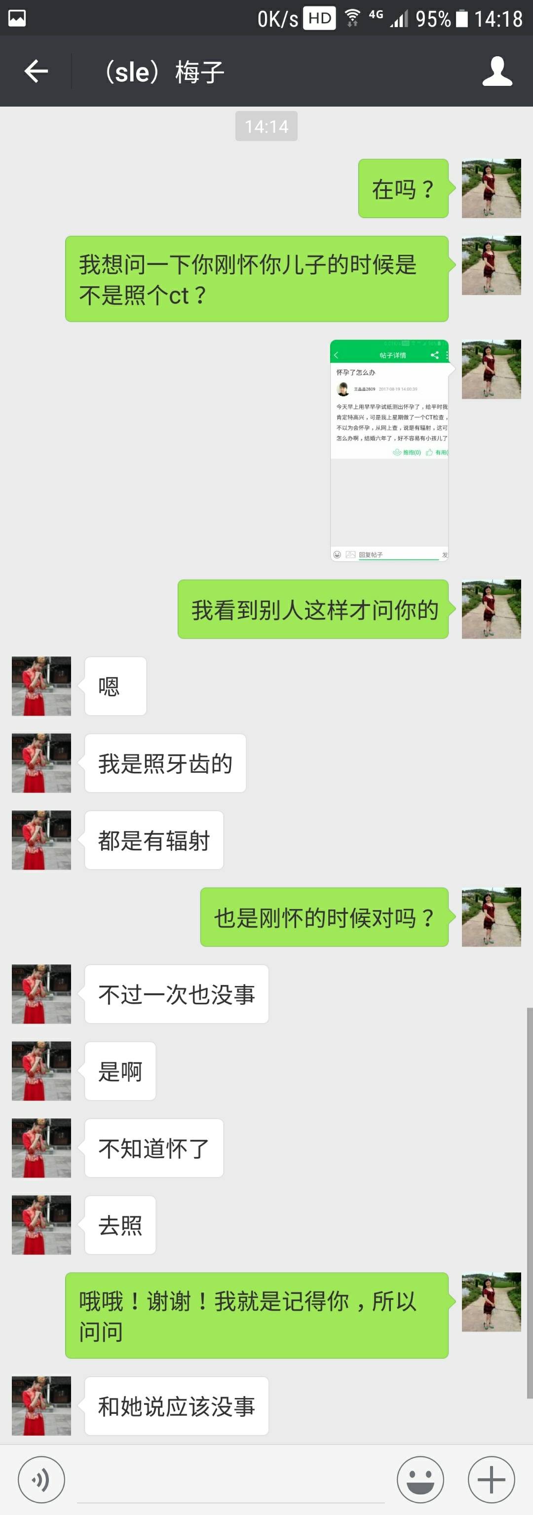 看到你的信息,我特意问了这个病友,因为她也是做过ct,最后她顺利生下了一个胖儿子,希望你好运