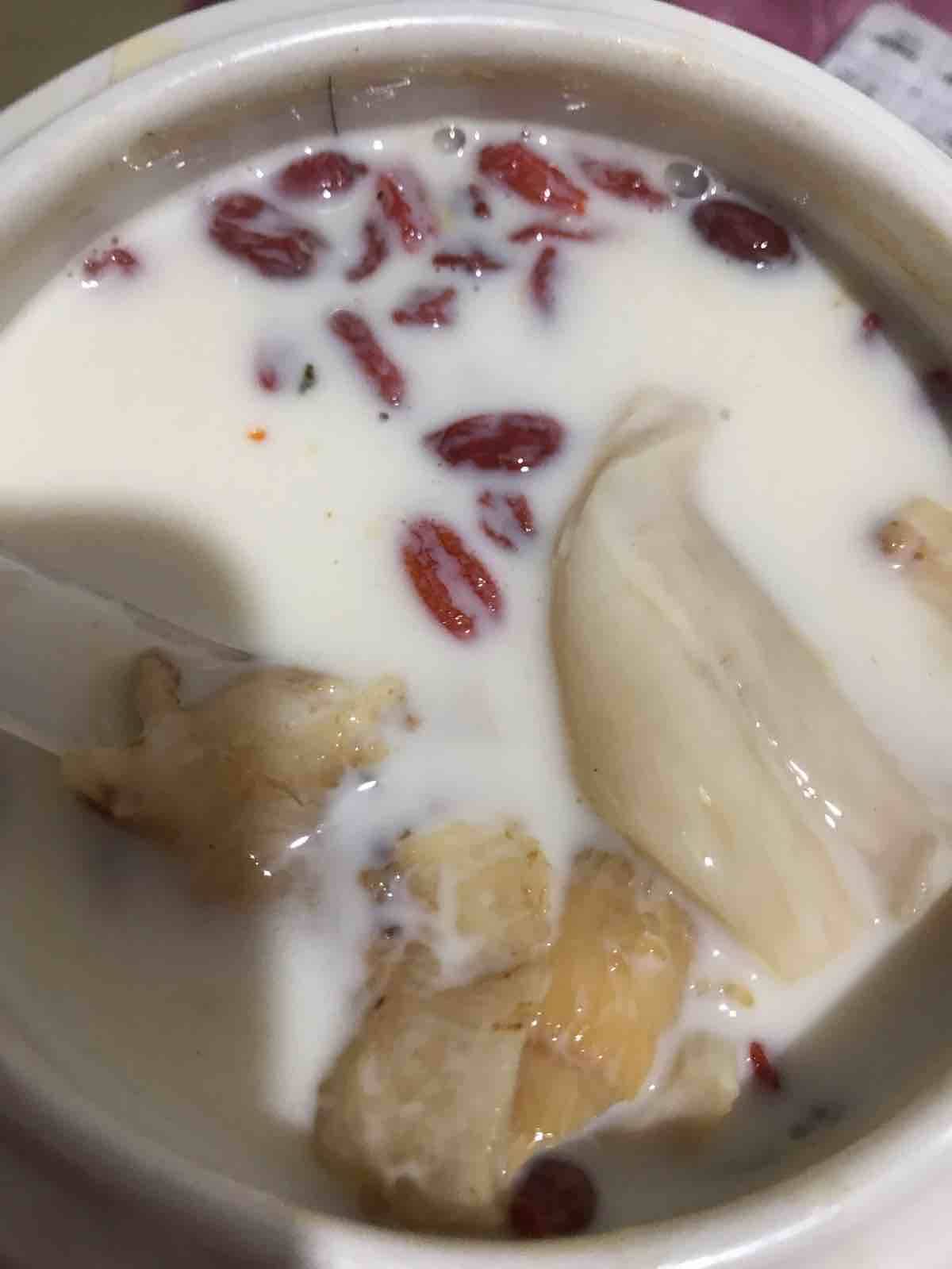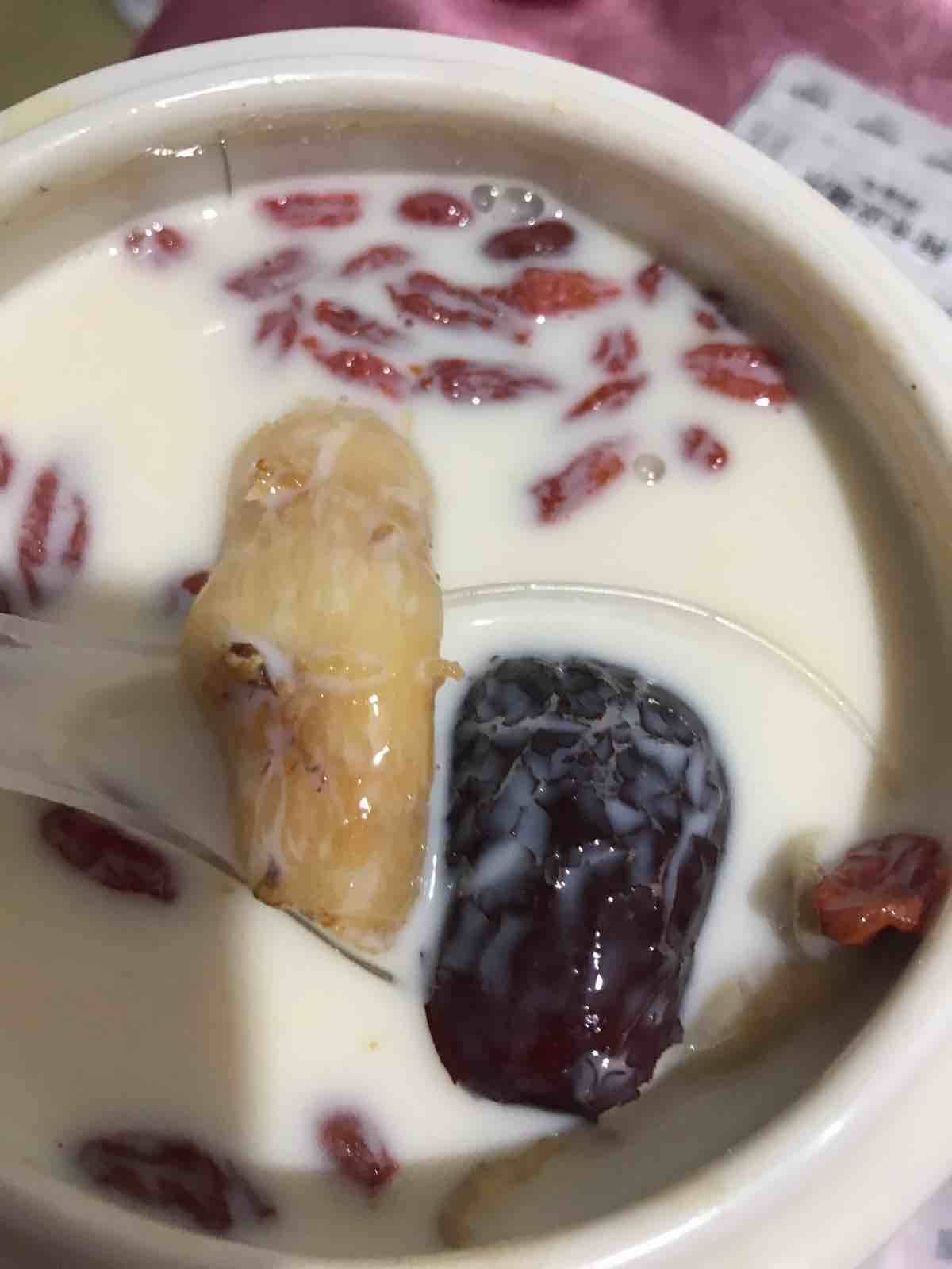 鱼胶炖牛奶。加了点枸杞,红枣。没有放糖。一点味道都没有
