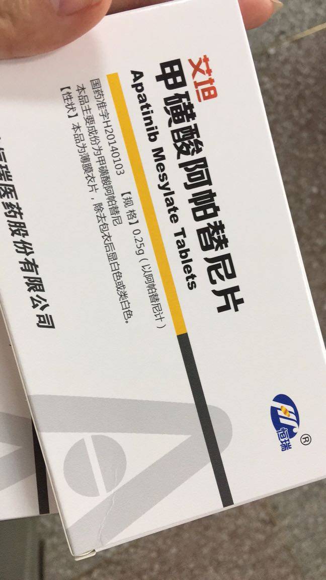 医生给你开的就是阿帕替尼,这个是治疗胃癌的靶向药,现在很多医生给没有基因突变的肺癌患者推荐这个药