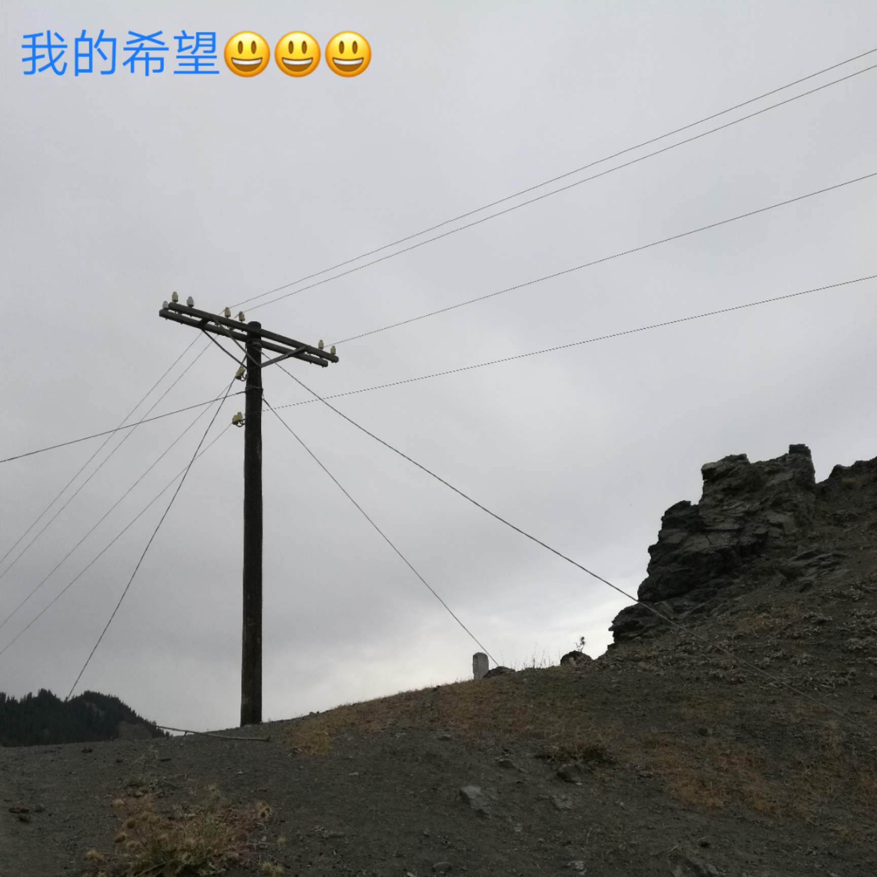 (昨日徒步15公里,翻二座山,出门负重10.8公斤,回家净重6公斤,上午登山感觉还很轻松,下午在快到顶时有点体力跟不上了,调整呼吸,休息片刻,照照风景照,最后登上山顶,看见电线杆感觉好亲切,该走下山的路了